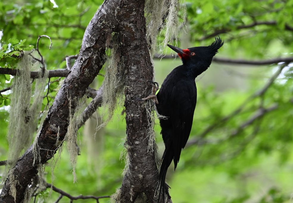 Magellanic Woodpecker. In 2018, I was considering a trip to Patagonia after coming across evidence that Magellanic Woodpeckers might have flights similar to the Ivory-billed Woodpecker. I set aside those plans after being diagnosed with prostate cancer. After retiring in 2025, I got in touch with Valeria Ojeda, who offered to take me to active nests in old-growth lenga forests, where she has been studying Magellanic Woodpeckers for more than twenty years. Just before the trip, my left foot and ankle swelled up. I knew this probably meant there was a blood clot in my leg (it was later diagnosed as an occlusive clot behind the knee), but I wasn’t going to let anything get in the way of this opportunity. A female Magellanic Woodpecker appears in the above photo. A male appears in this photo. At one of the nests, I obtained video footage of magnificent swooping flights similar to upward swooping landings with long vertical ascents that appear in video footage that was obtained during an encounter with a pair of Ivory-billed Woodpeckers in Florida in 2007. One of the flights (Movie S12 here) is exactly as depicted in this illustration, with a long vertical ascent, rotation about the axis, and landing on a surface that does not face the direction of approach. From directly below a nest, I obtained a photo (click here for high-resolution version) that shows that the Magellanic Woodpecker has wing and tail proportions similar to those of the Ivory-billed Woodpecker: (1) the distance the tail projects behind the trailing edge of the wings is about the same as the distance between the leading and trailing edges of the wings and (2) the width of the body is a substantial fraction of the distance between the leading and trailing edges of the wings. In this comparison, note the similarities in the feet and crests (Tanner took the photo of the nestling Ivory-billed Woodpecker, which was later determined to be a male). The videos captured various types of flight, other behaviors, two types of wing noise, and many double knocks. Some of this material is available for download here. From one of the nest sites, I had a nice view of Mt. Tronador. During my visit to Bariloche, Facundo Vital took me to a massive rock face that is pockmarked with caves where Andean Condors roost.