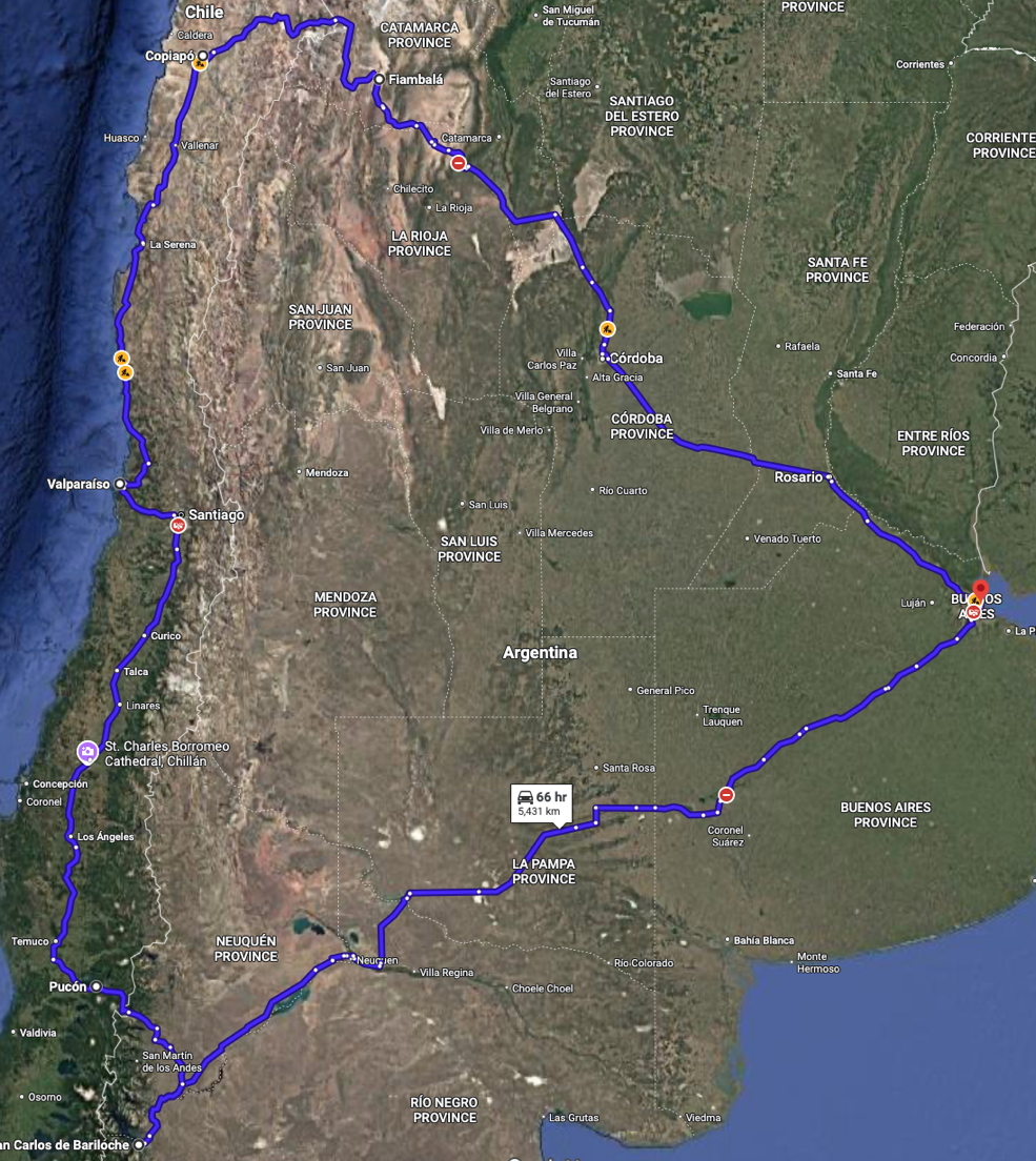 Atacama Desert. On the final leg of the trip, I drove north to Copiapó, where I obtained this photo of the clear blue sky from the balcony of my hotel. The above photo of the barren hills in the Atacama Desert (the driest place on Earth outside of Antarctica) was obtained during a drone flight to the east of Copiapó. After a night of using the Vespera 2, I decided to start the trip back to Buenos Aires. I wasn’t aware of the difficulty of the drive across the Atacama Desert (six and a half hours with no services) and over the Andes (15,505 foot pass). The landscape in the Atacama Desert is painted in many colors, as can be seen in this satellite image (Copiapó is to the lower left; Laguna Verde and the pass at the border are to the upper right). I started the drive in the middle of the day and wanted to be sure to arrive at the border station before it closed. To save time, I passed up many spectacular photo opportunities that arose as the colors changed around each bend. I made only a few stops and got photos of Laguna Verde and Guanacos. After I arrived in Fiambalá, an attendant at a gas station accidentally filled the tank of my rented Toyota Corolla with diesel fuel. When the mistake came to light a few blocks down the road, I returned the car to the gas station. A Good Samaritan customer at the gas station helped me get my luggage (loaded with valuable cameras and other gear) to a $20 hotel down the street (which was actually fairly nice). I was concerned about what would happen if the car couldn’t be fixed and driven back to Buenos Aires. The next morning, a mechanic drained the tank through a hose attached under the back seat. To my great relief, the car ran well after the tank was filled with gas. After an amazing road trip, it was wonderful to make it back to Buenos Aires and then back home the next day (just in time for a family gathering for Thanksgiving).