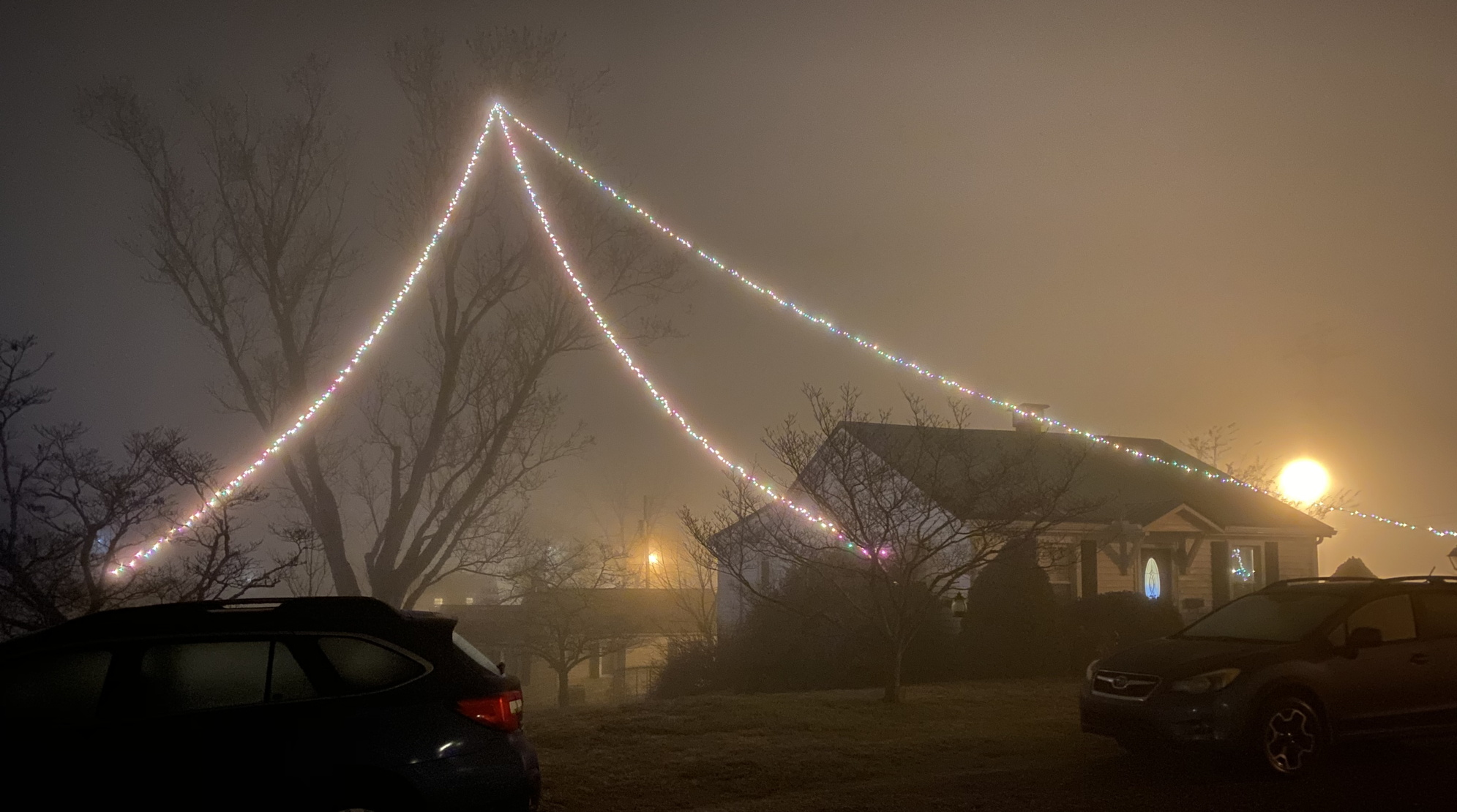 My interest in night-time photography started with auroras and then expanded into other subjects. Anyone with even a slight interest in night-time photography has taken photos of the Moon and Milky Way. I recently obtained a Vespera II smart telescope. I haven’t yet had an opportunity to use it under ideal conditions, but even with light pollution it produced nice photos of the Andromeda Galaxy, Whirlpool Galaxy, Hercules Cluster, Orion Nebula, Trifid Nebula, Eagle Nebula, Lagoon Nebula, and Omega Nebula. The inset photo above was over-exposed in order to show the part of the Moon that is illuminated by sunlight reflected from the Earth. It has a pale blue appearance, as would be expected since the Earth is a “pale blue dot,” as Carl Sagan described it. While the Moon orbits the Earth, an observer on the Earth sees the phases associated with the sunlit side of the Moon. There are also phases associated with the earthlit side of the Moon, but they’re not visible from the Earth. As shown in the illustration above, both types of phases would be visible to an observer in an orbit around the Moon. Such an observer would also see parts of the Moon that aren’t illuminated, which are never visible to an observer on the Earth. During a trip to the north of Alaska in 2016, I obtained this photo of a half Moon that appears just above the horizon with the terminator oriented nearly vertically (such a photo is possible only in the Arctic). I used indirect lighting to obtain a photo of a farm house with the Milky Way in the background. This photo of Christmas lights was taken with a long enough exposure to show the tracks of raindrops from the headlights of a car (there is a rainbow-like feature in the puddle to the left). A long exposure was used to obtain this photo of night-time traffic.