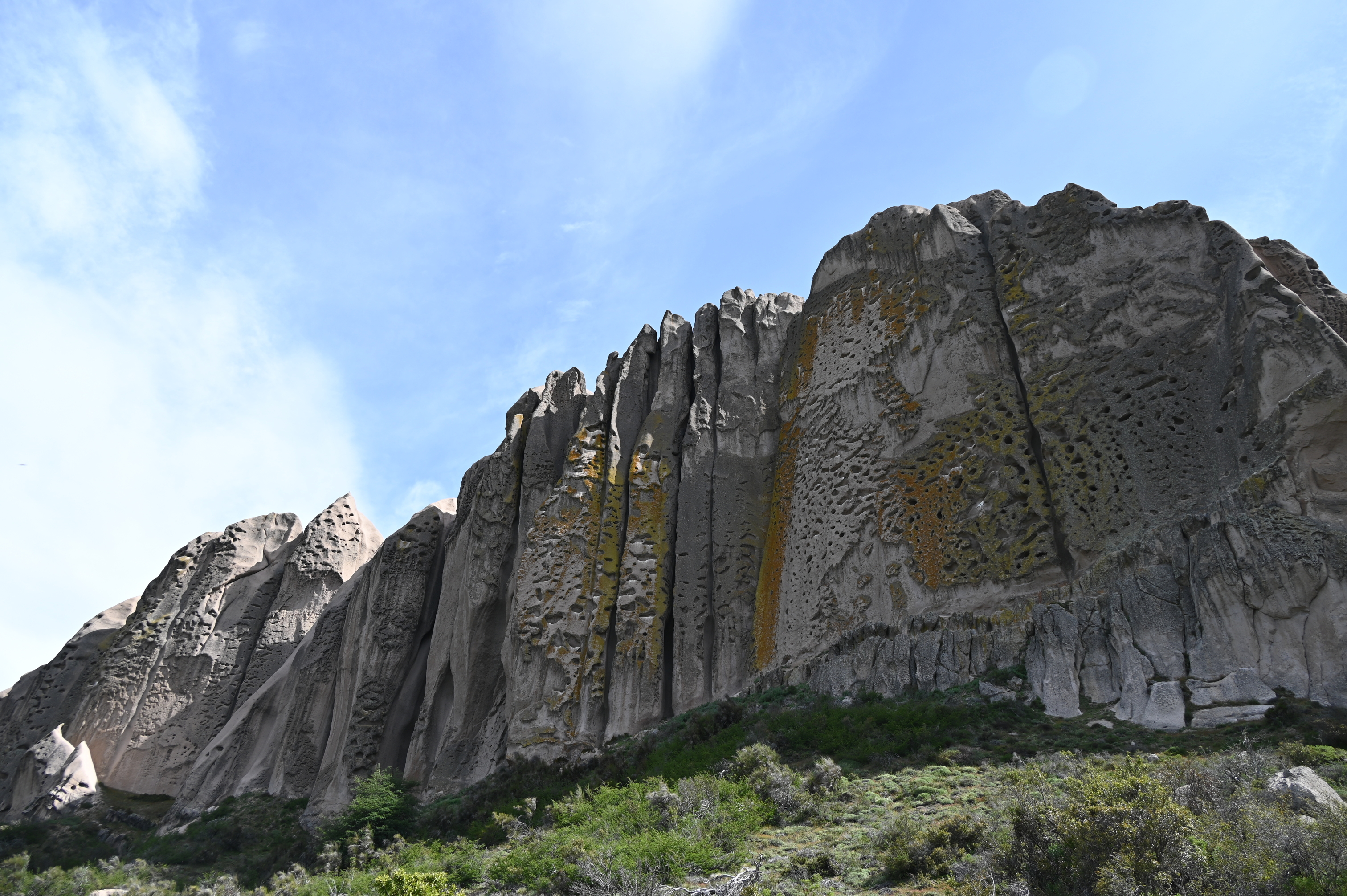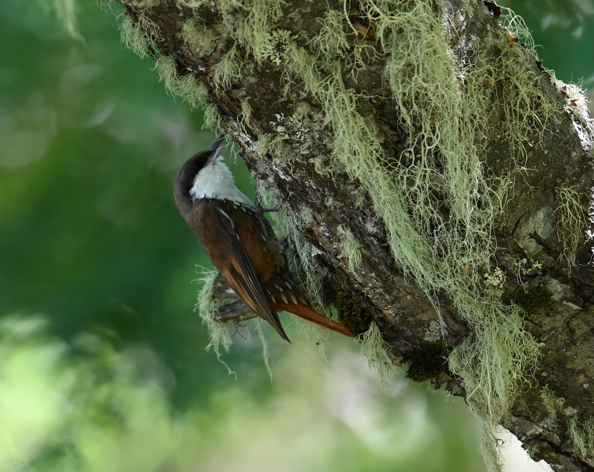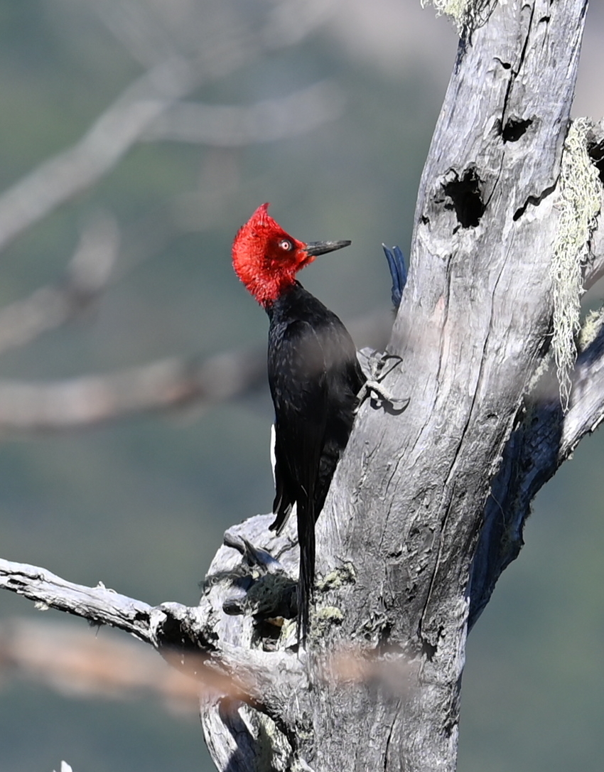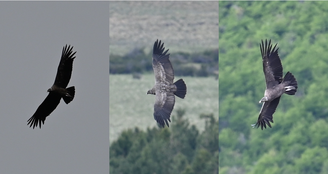 Magellanic Woodpecker. In 2018, I was considering a trip to Patagonia after coming across evidence that Magellanic Woodpeckers might have flights similar to the Ivory-billed Woodpecker. I set aside those plans after being diagnosed with prostate cancer. After retiring in 2025, I got in touch with Valeria Ojeda, who offered to take me to active nests in old-growth lenga forests, where she has been studying Magellanic Woodpeckers for more than twenty years. Just before the trip, my left foot and ankle swelled up. I knew this probably meant there was a blood clot in my leg (it was later diagnosed as an occlusive clot behind the knee), but I wasn’t going to let anything get in the way of this opportunity. A female Magellanic Woodpecker appears in the above photo. A male appears in this photo. At one of the nests, I obtained video footage of magnificent swooping flights similar to upward swooping landings with long vertical ascents that appear in video footage that was obtained during an encounter with a pair of Ivory-billed Woodpeckers in Florida in 2007. One of the flights (Movie S12 here) is exactly as depicted in this illustration, with a long vertical ascent, rotation about the axis, and landing on a surface that does not face the direction of approach. From directly below a nest, I obtained a photo (click here for high-resolution version) that shows that the Magellanic Woodpecker has wing and tail proportions similar to those of the Ivory-billed Woodpecker: (1) the distance the tail projects behind the trailing edge of the wings is about the same as the distance between the leading and trailing edges of the wings and (2) the width of the body is a substantial fraction of the distance between the leading and trailing edges of the wings. In this comparison, note the similarities in the feet and crests (Tanner took the photo of the nestling Ivory-billed Woodpecker, which was later determined to be a male). The videos captured various types of flight, other behaviors, two types of wing noise, and many double knocks. Some of this material is available for download here. From one of the nest sites, I had a nice view of Mt. Tronador. During my visit to Bariloche, Facundo Vital took me to a massive rock face that is pockmarked with caves where Andean Condors roost.