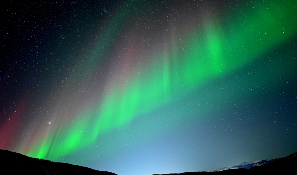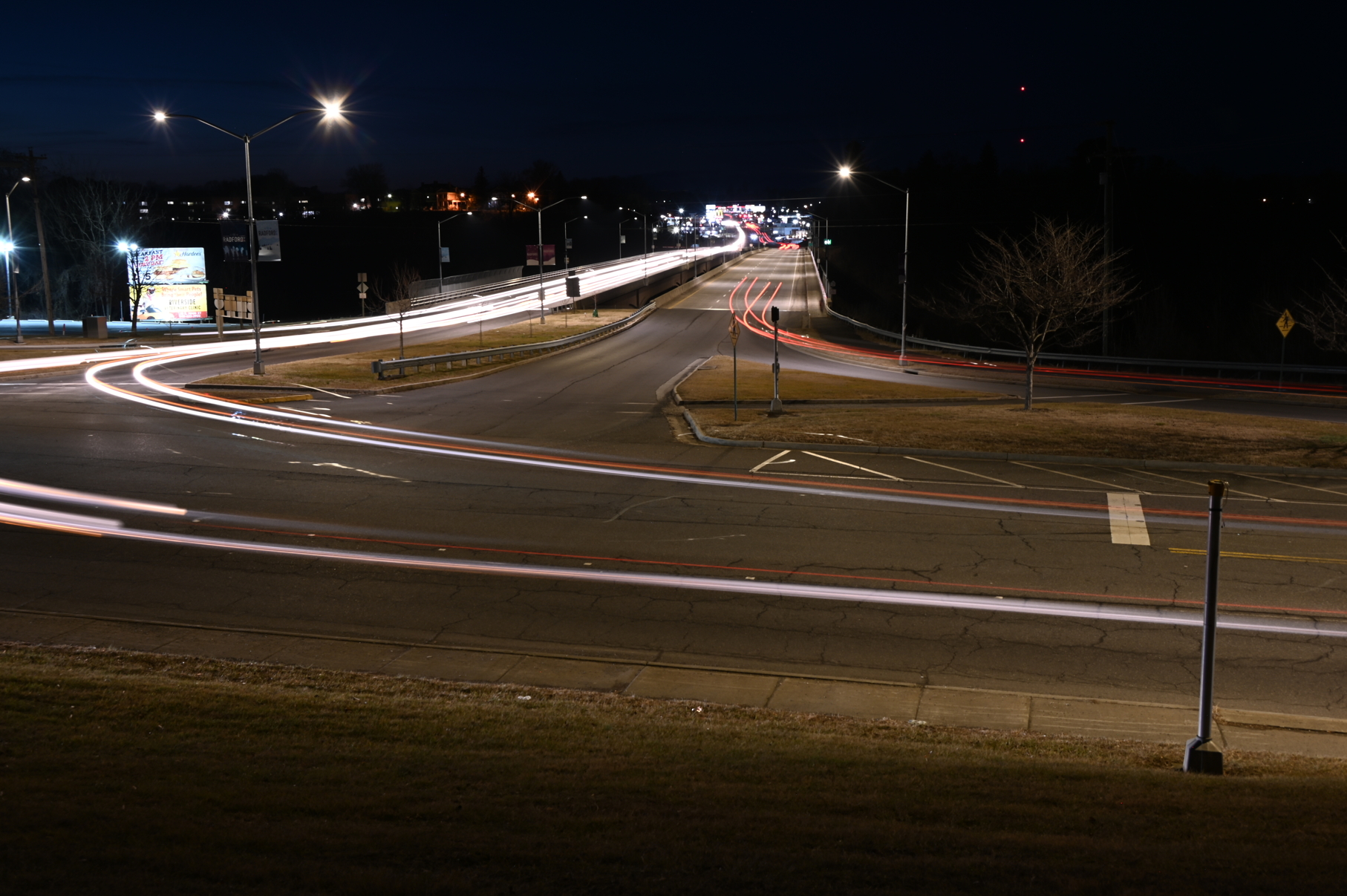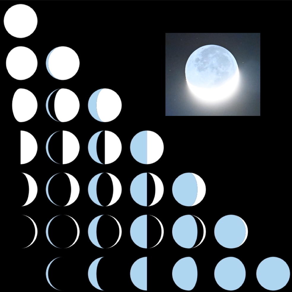 My interest in night-time photography started with auroras and then expanded into other subjects. Anyone with even a slight interest in night-time photography has taken photos of the Moon and Milky Way. I recently obtained a Vespera II smart telescope. I haven’t yet had an opportunity to use it under ideal conditions, but even with light pollution it produced nice photos of the Andromeda Galaxy, Whirlpool Galaxy, Hercules Cluster, Orion Nebula, Trifid Nebula, Eagle Nebula, Lagoon Nebula, and Omega Nebula. The inset photo above was over-exposed in order to show the part of the Moon that is illuminated by sunlight reflected from the Earth. It has a pale blue appearance, as would be expected since the Earth is a “pale blue dot,” as Carl Sagan described it. While the Moon orbits the Earth, an observer on the Earth sees the phases associated with the sunlit side of the Moon. There are also phases associated with the earthlit side of the Moon, but they’re not visible from the Earth. As shown in the illustration above, both types of phases would be visible to an observer in an orbit around the Moon. Such an observer would also see parts of the Moon that aren’t illuminated, which are never visible to an observer on the Earth. During a trip to the north of Alaska in 2016, I obtained this photo of a half Moon that appears just above the horizon with the terminator oriented nearly vertically (such a photo is possible only in the Arctic). I used indirect lighting to obtain a photo of a farm house with the Milky Way in the background. This photo of Christmas lights was taken with a long enough exposure to show the tracks of raindrops from the headlights of a car (there is a rainbow-like feature in the puddle to the left). A long exposure was used to obtain this photo of night-time traffic.