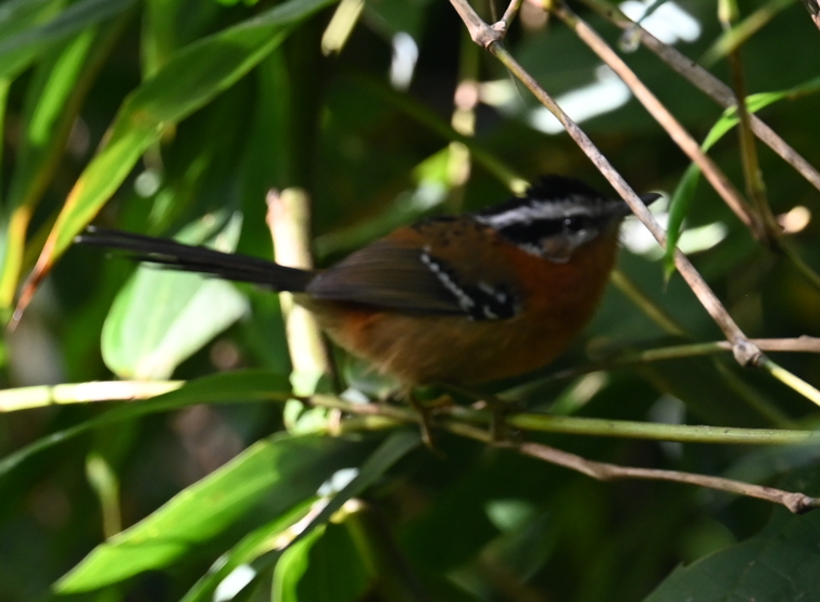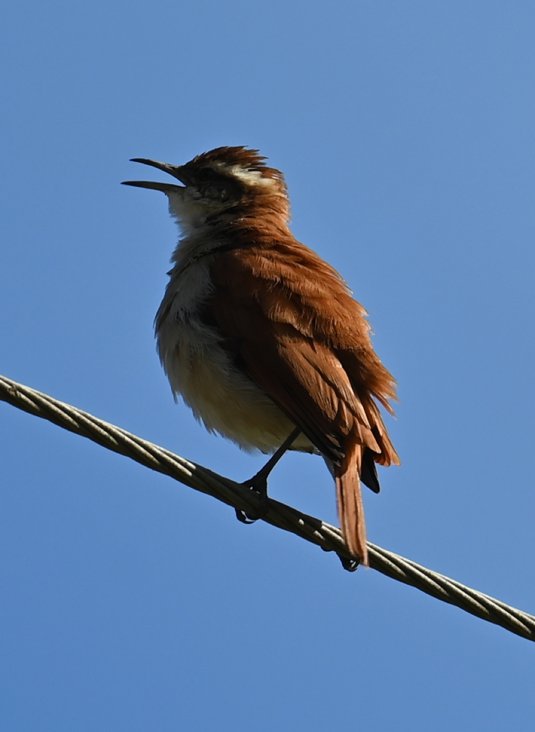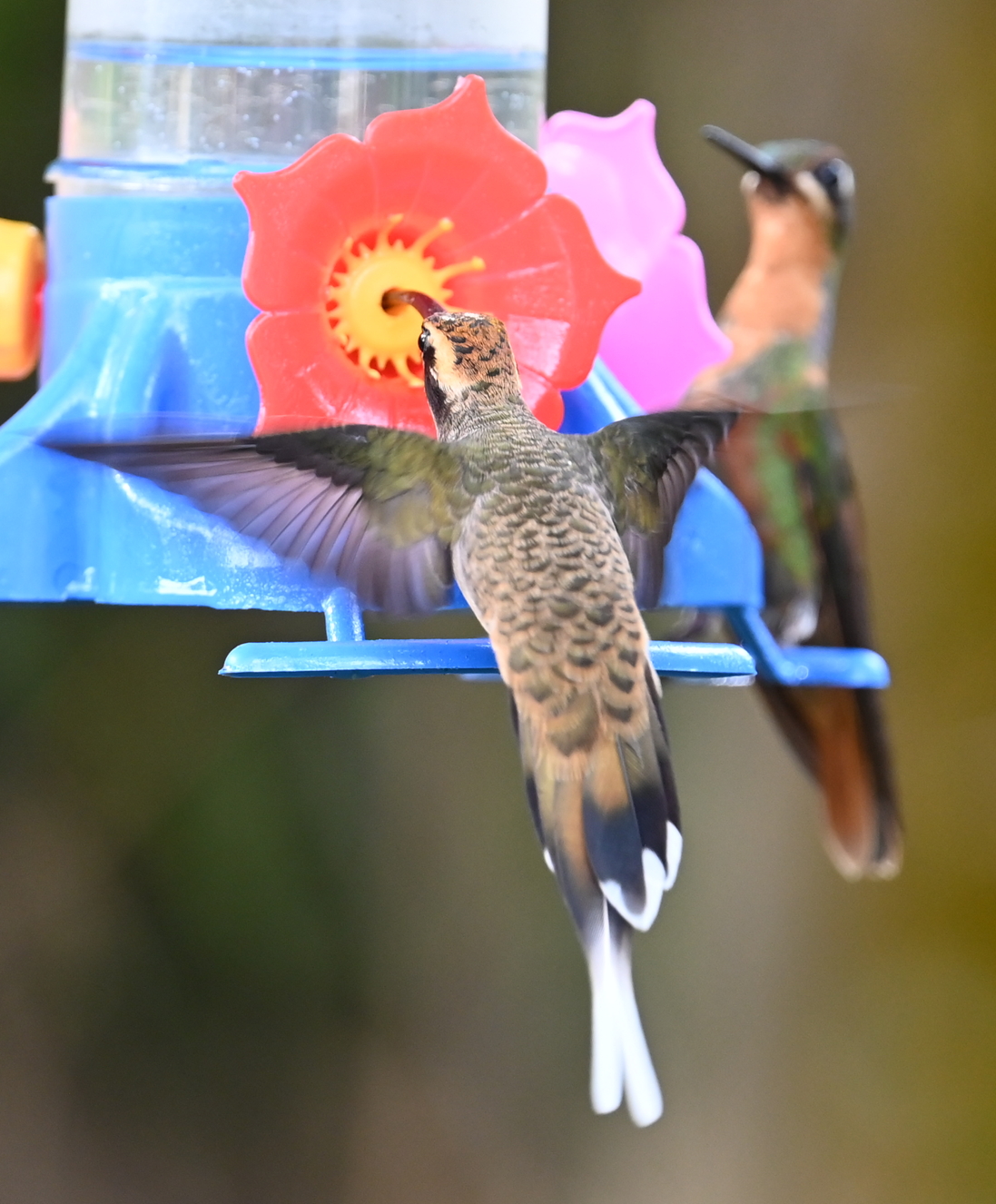 Bird photography. During the last week of May, I did some bird watching at Iguazu Falls and at parks in Campinas and Jundiaí. During the first week of June, Demis Bucci led me on a bird watching trip that included two nights at Ninho da Cambacica in Ubatuba (in the lowlands), two nights at Sítio Cotinga in São Luis do Paraitinga (more than 5000 feet above sea level), and various locations near and between those lodges. I used a Nikon Z6ii camera with a 400 mm f/4.5 lens. The above photo of a Long-trained Nightjar was taken with an ISO of 3200 and an exposure time of 1/50 of a second. The 224 species in the list below were seen or heard during the trip. Photos may be viewed by clicking on the highlighted species (and in this video). Near both lodges, I used a weather-proof audio recording system that is based on the Sony PCM-D100 and designed to operate for multiple days. Having previously used lead batteries as an external power source, I reconfigured with 28 AA batteries in order to reduce the weight of my luggage. This audio recording was obtained in the forest at Sítio Continga. Demis is an extraordinary guide in terms of his knowledge of the birds and ability to find them. Both lodges have excellent facilities, good food, and friendly hosts. View of the feeders at Ninho da Cambacica. View over the surrounding landscape from the lodge at Sítio Cotinga. The single-unit lodge at Sítio Cotinga sits alone, above and away from the other facilities. While using my laptop late one night, I noticed a moving shadow in the corner of my eye. Since it was dark outside, this meant there was an animal inside! It turned out to be a house cat that must have entered hours earlier, when the door was left open to let in some cool air.