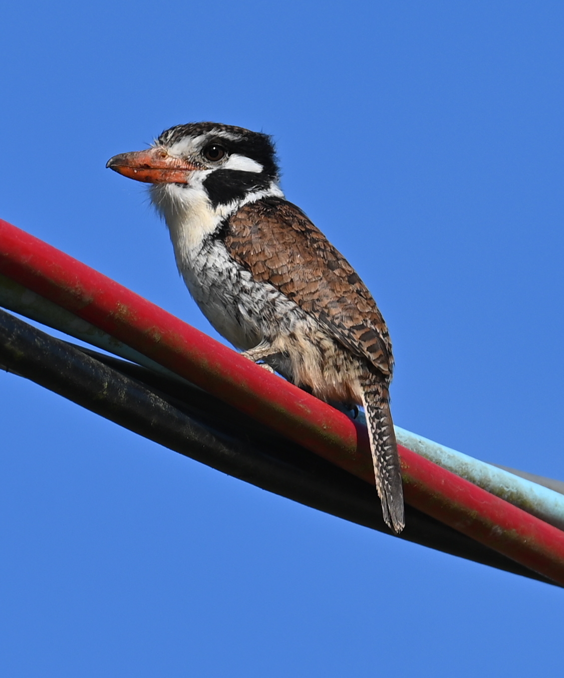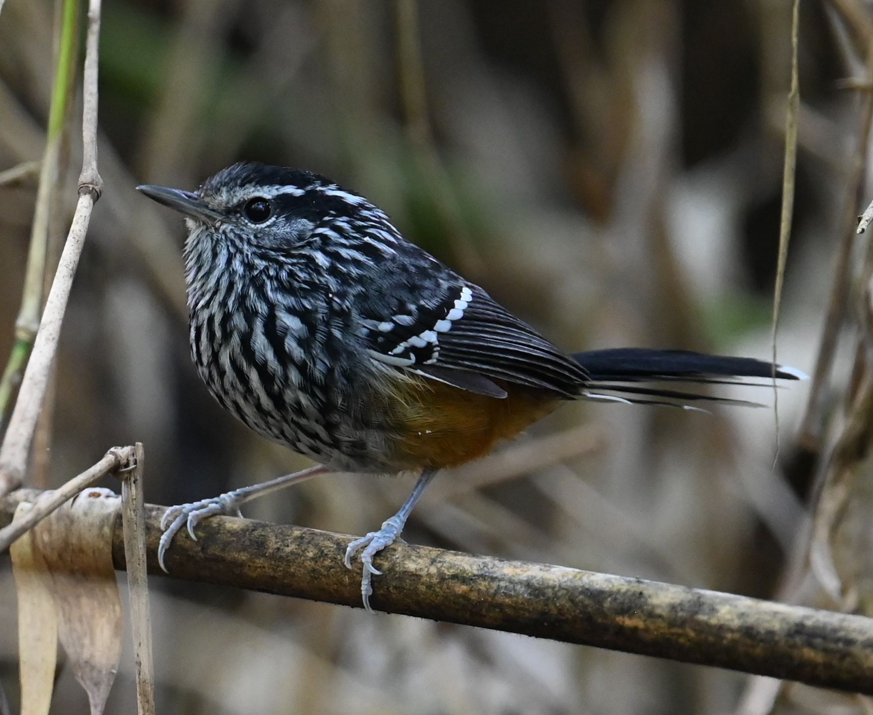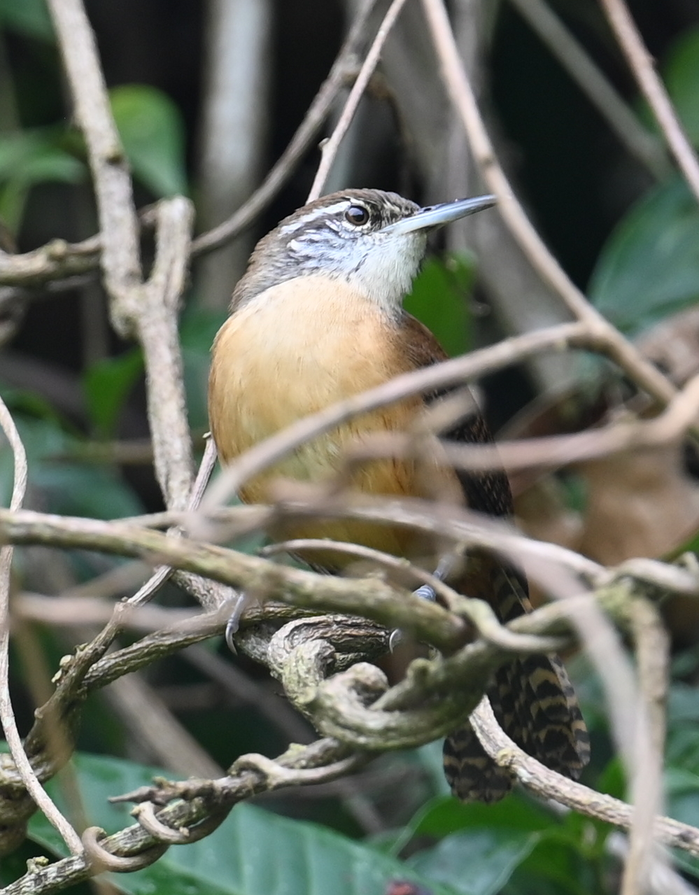 Bird photography. During the last week of May, I did some bird watching at Iguazu Falls and at parks in Campinas and Jundiaí. During the first week of June, Demis Bucci led me on a bird watching trip that included two nights at Ninho da Cambacica in Ubatuba (in the lowlands), two nights at Sítio Cotinga in São Luis do Paraitinga (more than 5000 feet above sea level), and various locations near and between those lodges. I used a Nikon Z6ii camera with a 400 mm f/4.5 lens. The above photo of a Long-trained Nightjar was taken with an ISO of 3200 and an exposure time of 1/50 of a second. The 224 species in the list below were seen or heard during the trip. Photos may be viewed by clicking on the highlighted species (and in this video). Near both lodges, I used a weather-proof audio recording system that is based on the Sony PCM-D100 and designed to operate for multiple days. Having previously used lead batteries as an external power source, I reconfigured with 28 AA batteries in order to reduce the weight of my luggage. This audio recording was obtained in the forest at Sítio Continga. Demis is an extraordinary guide in terms of his knowledge of the birds and ability to find them. Both lodges have excellent facilities, good food, and friendly hosts. View of the feeders at Ninho da Cambacica. View over the surrounding landscape from the lodge at Sítio Cotinga. The single-unit lodge at Sítio Cotinga sits alone, above and away from the other facilities. While using my laptop late one night, I noticed a moving shadow in the corner of my eye. Since it was dark outside, this meant there was an animal inside! It turned out to be a house cat that must have entered hours earlier, when the door was left open to let in some cool air.