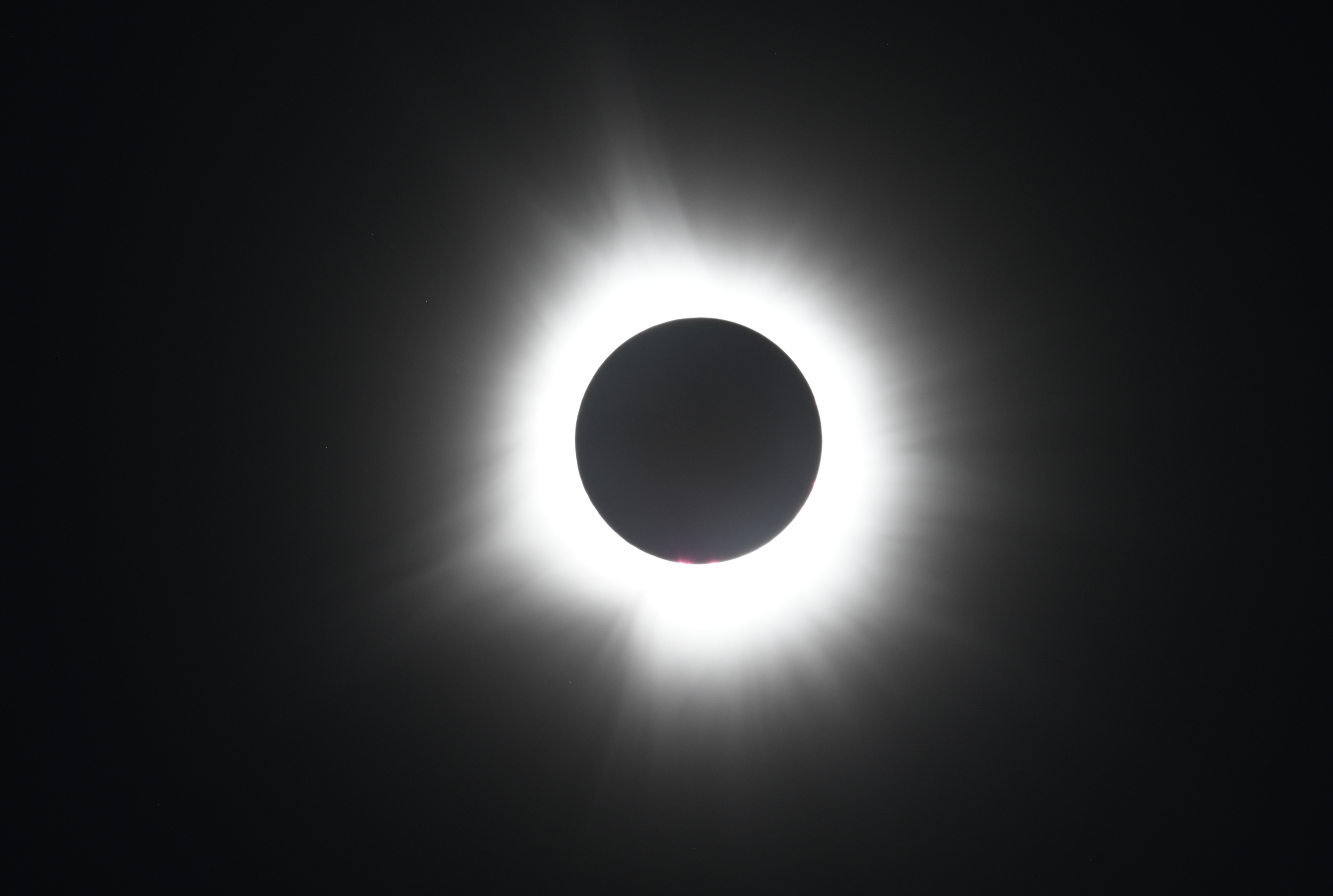 I watched the eclipse of April 8, 2024, just to the east of Ash Flat, Arkansas. I obtained photos using a Nikon Z6ii with a NIKKOR 400 mm f/4.5 lens with a 1.4X extender to 560 mm. I used exposure bracketing to capture different parts of the corona. The above photos were obtained using an ISO of 400, an aperture of f/11, and exposure times of 1/250, 1/125, 1/60, 1/30, 1/15, 1/8, 1/4, 1/2 and 1 second. Prominences are visible in this photo, which was obtained with an exposure time of 1/250 second. The prominence near the bottom in that photo was easily visible to the naked eye during the eclipse. Details of the corona further from the Sun are visible in this photo, which was obtained with an exposure time of 1/2 second. I used a DJI Phantom 4 Pro drone to obtain video footage of the distant sky in the direction of the approaching shadow. In the first part of the video, totality is far off, and the distant sky appears dark. Later on, the ground near the drone gets darker, and the distant sky gets brighter as totality comes to an end far in the distance. The shadow moves several times faster than a jet liner, but its trailing edge can be seen approaching in the video.