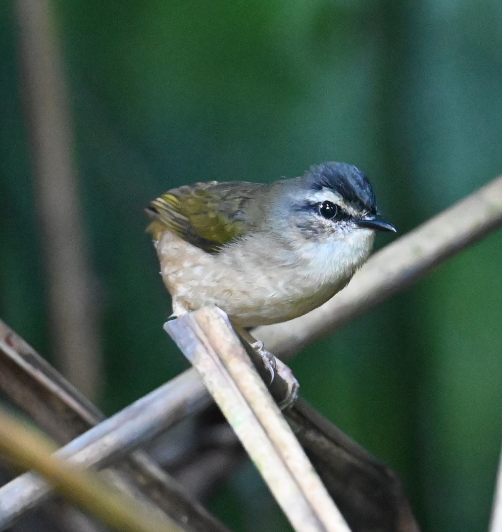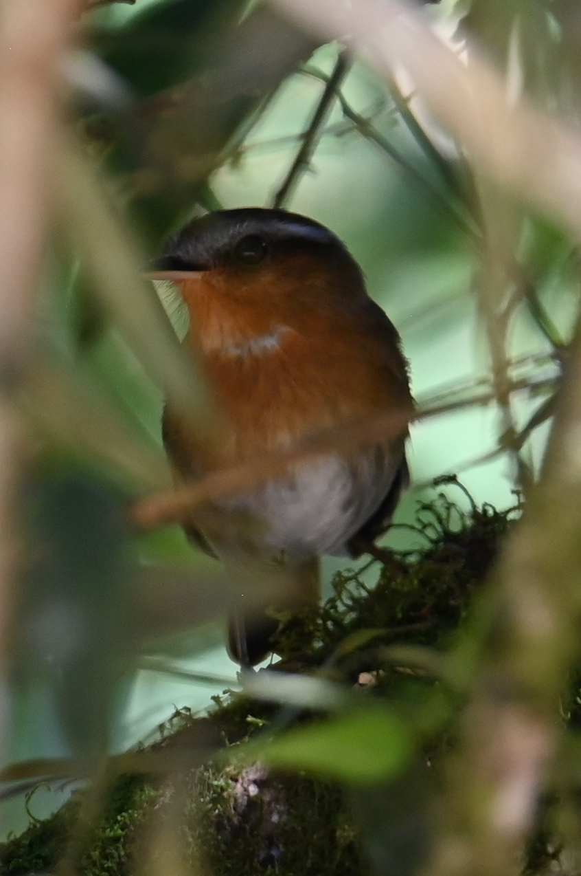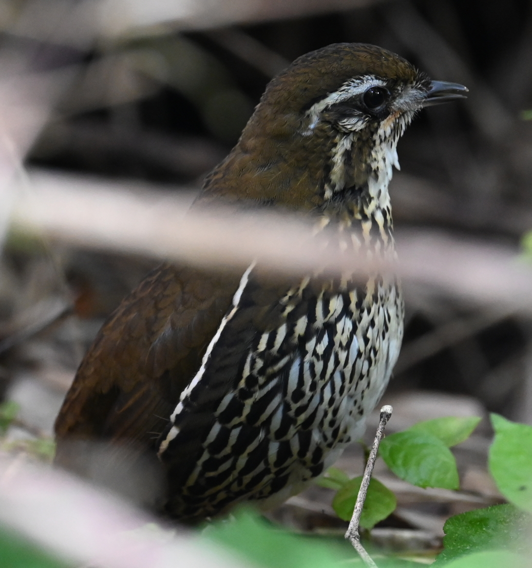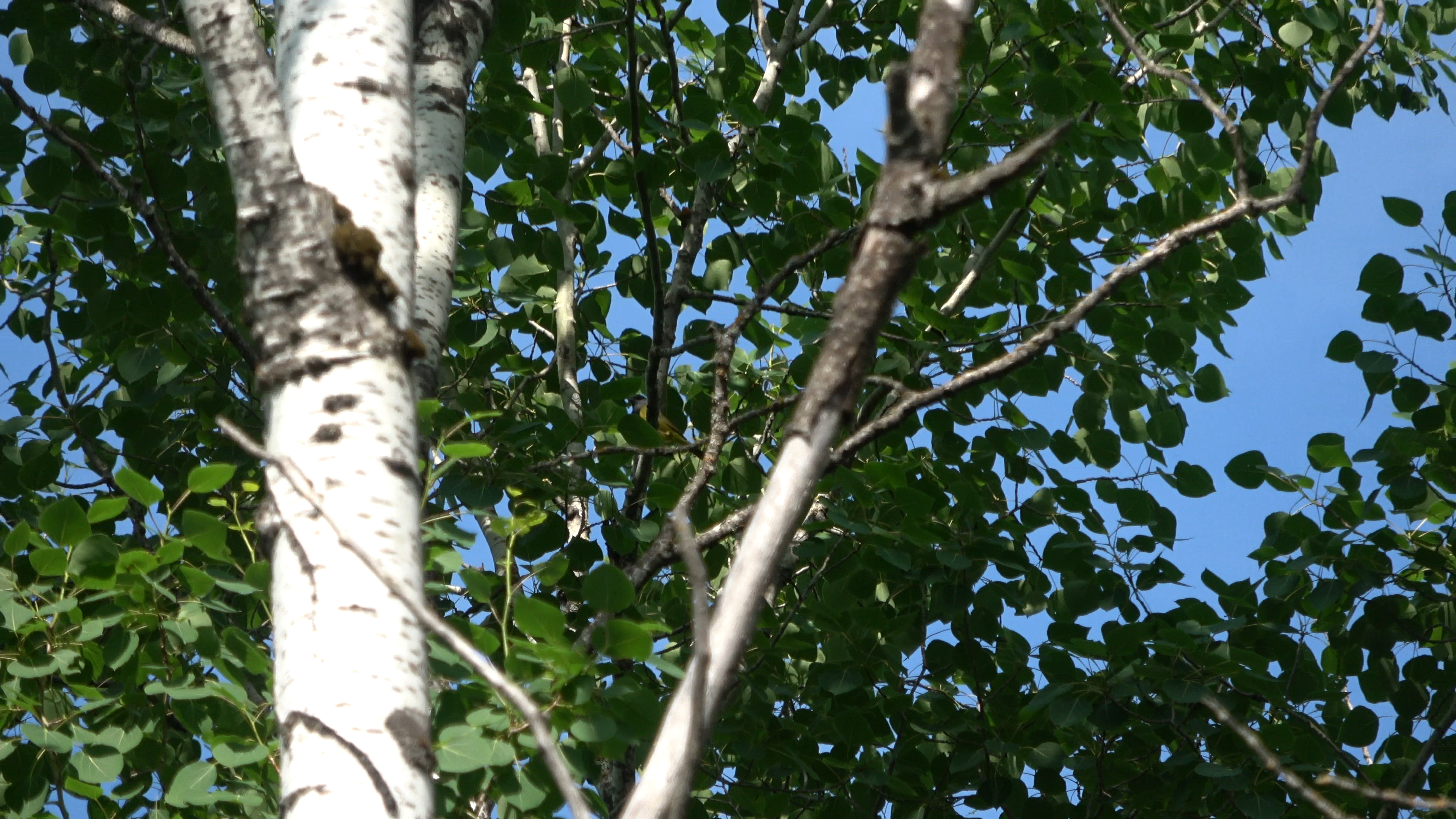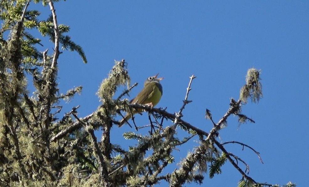 Wakefield Park in northern Virginia had lots of good habitat for migrating Connecticut and Mourning Warblers in the late 1990s. During that period, I searched that park for those species each morning during migration. I saw each of them ten times in 1998. I saw both species on the same day a few times. I saw three Connecticut Warblers one morning in 1999. A Mourning Warbler set up an out-of-range territory there in 2004. I searched for those elusive birds by relentlessly covering as much area as possible each day. Several years later, I used the same strategy to search for Ivory-billed Woodpeckers. In 1997, I visited southeastern Manitoba to observe Connecticut and Mourning Warblers on their breeding grounds. As June approached every subsequent year, I longed to return to the boreal forests of that region. I finally made it back up there in 2023. On a 4,000 mile road trip, I drove up the northwestern coast of the lower peninsula of Michigan, over the Mackinac Bridge, to the north of Lake Superior, and across Ontario through Thunder Bay and Kenora. I found dozens of Mourning Warblers but only one Connecticut Warbler, which was singing deep in a spruce bog to the west of Kenora. I initially decided not to venture out into the bog to see that bird. I was anticipating easier opportunities further to the west in Manitoba, but it turned out that an area where these birds nested in 1997 had been logged. Running short on time, I decided to backtrack to the site near Kenora, where the Connecticut Warbler was still singing! Having suffered a broken arm during a fall in 2007, I cautiously made my way out over the unstable ground in the bog. I obtained more than ten minutes of video with a handheld 4K camera. It was hard to hold the camera steady while standing on unstable ground and with the lens on full zoom, but DaVinci Resolve did a nice job of removing the effects of camera motion. I also got some footage of a Spruce Grouse. Over and over, I aimed the video camera in the direction of a singing Mourning Warbler that seemed to be invisible. This photo gives an indication of how well these birds can blend into the vegetation. The camera picked up that bird, but my eyes missed it.