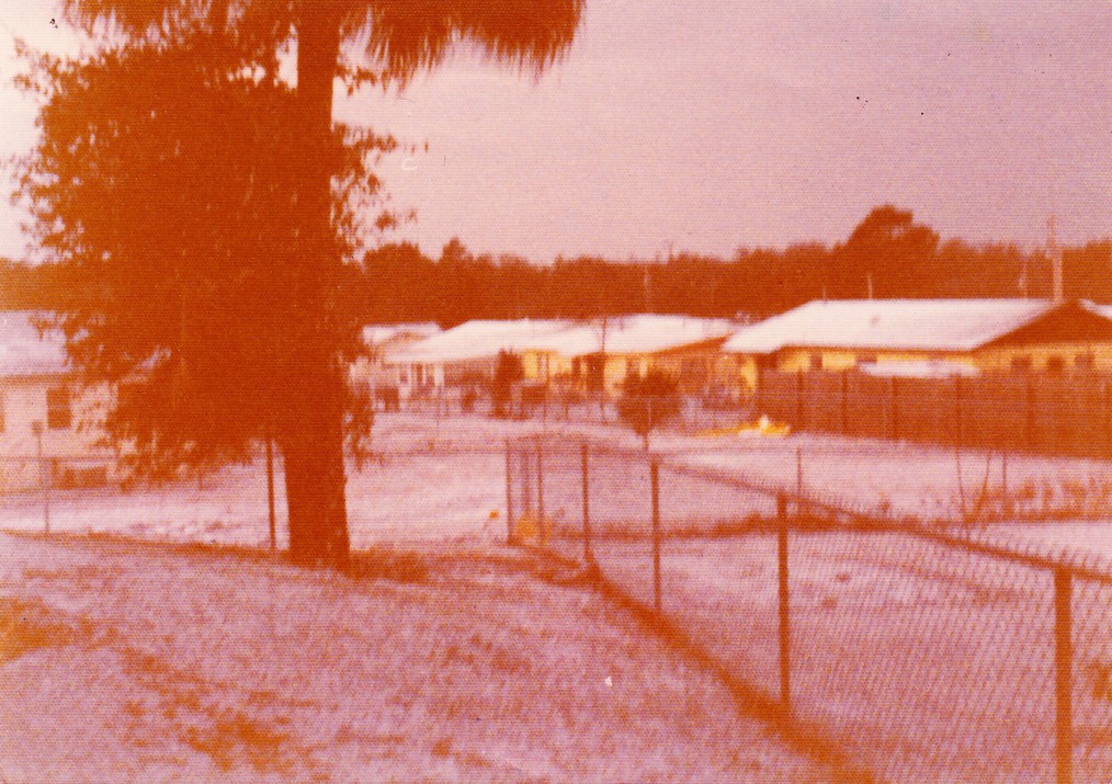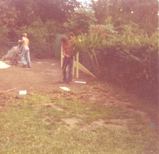Starting at the age of 15 in 1973, I spent several years doing construction work, including building fences (such as this one at my mother’s house in Tampa as shown after a rare snowstorm in 1977) and swimming pools (such as this one, where I’m dumping a wheelbarrow in 1977). At the age of 62, I helped out in a type of construction work in which I had no previous experience — installing a metal roof. As discussed here, it was interesting to see some of the problems that can arise in roofing and how to deal with them.