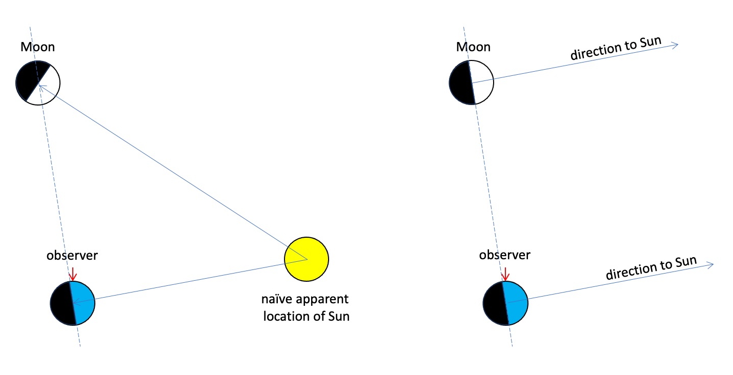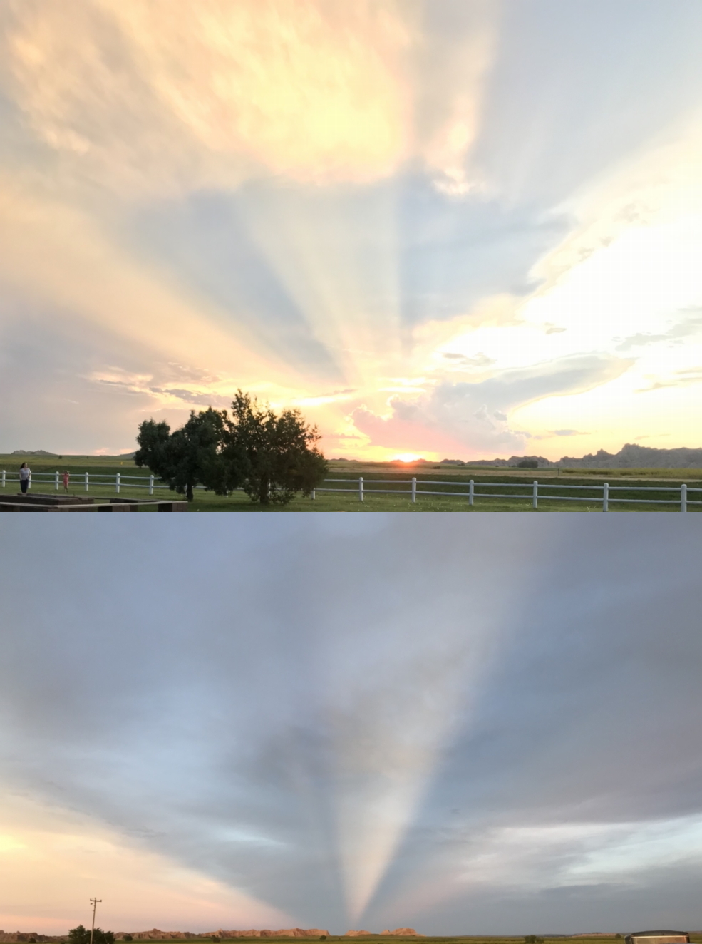 Excellent photo opportunities often arise around the times of sunrise and sunset. The above photos were obtained during a stunning sunset near the Badlands of South Dakota. The top photo is the view looking in the direction of the Sun. The bottom photo is the view looking in the direction opposite the Sun. I was initially puzzled after noticing the beams converging in the direction opposite the Sun, but this is how they should appear. Since the beams are nearly parallel while crossing the sky, they appear to converge to a vanishing point when viewed in either direction. Another counterintuitive phenomenon that occurs near sunset is illustrated in this diagram. Since the Sun and Moon have about the same apparent diameter, it’s natural to get the impression that they’re about the same distance from the Earth. If they were, the half Moon would appear more than half illuminated as indicated on the left in the diagram. The right side of the diagram indicates the correct geometry. By looking up at the half Moon and applying the logic in the diagram, the ancients could have concluded that the distance to the Sun is many times the distance to the Moon and that the Sun is many times larger than the Moon. In 2013, I filmed a ‘binary star’ sunrise during a partial eclipse. The Sun appeared as a crescent, with its corners appearing as two bright point sources below a thick deck of clouds on the horizon. One of my most memorable sunrises is this one during a transit of Venus on June 8, 2004. I observed this sunrise on the way out to sea from Ålesund, Norway. Among the most gorgeous sunsets I have seen are this one in Utah and this one in Pensacola (note the crescent Moon to the upper left). This photo was obtained near Flaming Gorge just before sunset. Even when the Sun barely gets above the horizon in the Arctic, it can put on colorful displays, such as during this sunset. I will never forget this sunset during my final visit to English Bayou in June 2013 to close out eight years of field work in the Pearl River swamp. This photo was obtained during a spectacular sunset in the Thousand Islands. This photo was obtained in Monument Valley just before sunset. In Virginia, I have photographed peaceful, turbulent, and fiery sunsets. Some of the best rainbows, such as this one, are visible just before sunset.
