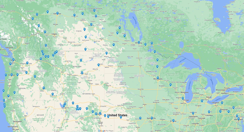 During the summer of 2024, I took a 17,964 mile road trip across North America. Photos, videos, and audio recordings from the trip are presented here. The purposes of the trip were to look for Connecticut Warblers and other birds and enjoy the scenery. Birds are most active and easiest to find in June, but higher elevations at some of the parks are closed until later in the summer. So it made sense to do the trip in two phases. I began the first phase in Alexandria, Virginia, on May 29. After stopping to visit relatives in Pennsylvania, I drove north to Kenora, Ontario, and then west to Riding Mountain National Park and Duck Mountain Provincial Park in Manitoba. After going south to see relatives in Montana, I drove back north to Prince Albert National Park in Saskatchewan and then west to Jasper and Banff National Parks in Alberta and British Columbia. I made a stop near the northern tip of Idaho to deploy a game camera that transmits photos by cell and has a solar panel. I then drove back into Montana to Glacier National Park. After a brief stop to reposition the game camera, I headed west to Seattle, Olympia, Portland, Crater Lake National Park in Oregon, Prairie Creek Redwoods State Park in northern California, and Tallimook in Oregon. During the trip back to the east, I visited Powder Mountain and Great Salt Lake in Utah, Dinosaur National Monument in Utah and Colorado, and Ft. Riley in Kansas. The trip odometer read 11,452 miles when I arrived back in Alexandria just after midnight on July 2. During the second phase of the trip in August, I visited Yellowstone National Park, returned to Idaho to upgrade the game camera setup, visited areas in Glacier National Park that were closed in June, and revisited Dinosaur National Monument. I drove 6,512 miles during the second phase for a total of 17,964 miles. During a 12,500 mile road trip in 1997, I didn’t own any cameras. For this trip, I had a Nikon Z6ii, 400 and 560 mm lenses, a 24 to 200 mm zoom lens, a DJI Phantom 4 Pro drone, a Sony PCM-D100 audio recorder, and a Sony 4K video camera.