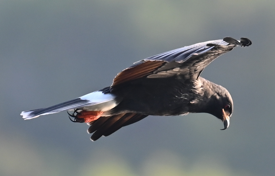 Cruising Flight. The Ivory-billed Woodpecker has a ‘duck-like’ flight according to historical accounts, which were incorrectly interpreted to pertain to the wing motion. In the September/October 2005 issue of Bird Watcher’s Digest, the flights of the large woodpeckers are illustrated in a series of paintings by Julie Zickefoose (an avian artist whose work on the Ivory-billed Woodpecker has appeared on the cover of the January 2006 issue of The Auk). Zickefoose correctly showed the wings of the Pileated Woodpecker folding closed during the middle of the upstroke (this wing motion is apparent in this footage). In accordance with conventional wisdom at the time, Zickefoose showed the wings of the Ivory-billed Woodpecker remaining extended throughout the entire flap cycle. After the 2008 video revealed that the wing motion of the Ivory-billed Woodpecker is similar to the wing motion of the Pileated Woodpecker (as shown in the right frame of the illustration above), it came to light that a photo from 1939 was taken at an instant when the wings were nearly folded closed. This is one of the lowest quality historical photos, and the clue it provides about wing motion was apparently overlooked for several decades. The description of a duck-like flight evidently pertained to the high-speed flight rather than to the wing motion. The bird in the 2008 video has a flight speed of 15.2 m/s, which is well above the flight speed range of 7.5 to 11.6 m/s that Bret Tobalske published for the Pileated Woodpecker. The bird in the 2008 video has a wingbeat frequency that is about double the wingbeat frequency that Tobalske published for the Pileated Woodpecker. The high flight speed and high wingbeat frequency are consistent with historical accounts, the narrow wings and high mass of this species, and the predictions of models that relate these quantities to each other and to body parameters. The wings of the bird in the 2008 video have a swept-back appearance, which is consistent with a photo from 1935 and the narrow wings and high-speed flight of this species. The wings of the Pileated Woodpecker do not seem to have a swept-back appearance during cruising flight.