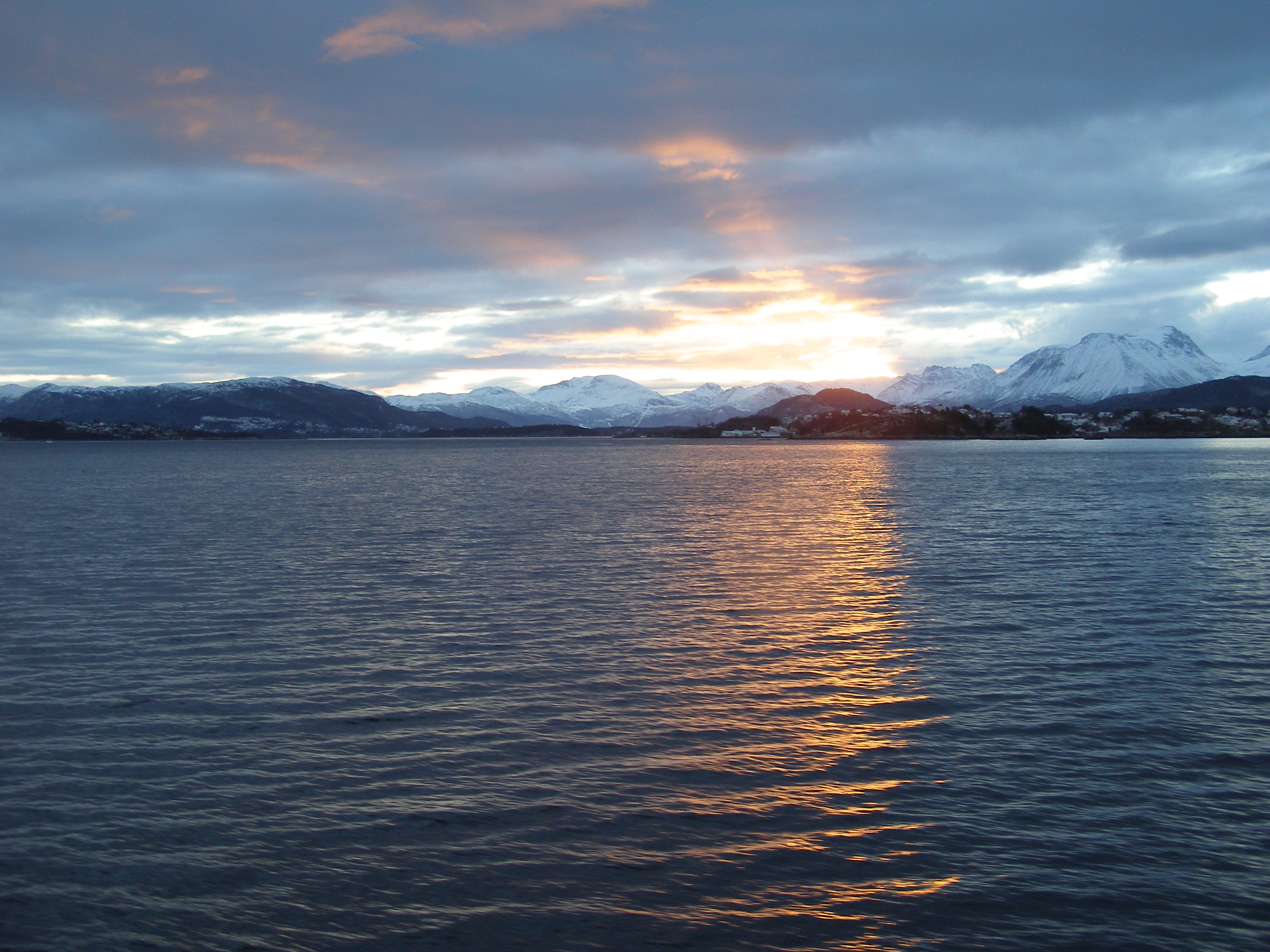 North of Norway (Winter 2014). During the winter of 2014, I participated in a sea trip off the coast of Norway and obtained lots of photos and video footage. The videos may also be accessed in this playlist on YouTube. As shown on this map, the trip began in Ålesund on February 18 and ended in Tromsø on March 9. Most of the trip was above the Arctic Circle, including several days above the northernmost tip of Norway up to nearly 72° N. Only a few people went ashore during a brief stop at Honningsvåg, but it was interesting to see that town from the ship. The video footage was obtained using bino-cam, which consists of a video camera mounted on binoculars. The binoculars provide a better image than the viewfinder and make it easier to get the camera on a bird. I saw a gull that seemed different from all of the common species that were seen regularly during the trip and suspected it was an Ivory Gull while watching it through the binoculars. It was exciting to see flocks of alcids with stunning Arctic scenery in the background. I never got tired of watching fulmars in flight. The northern lights were indescribably amazing on some nights, with some of the glowing green arcs passing directly above and extending from one horizon to the other.
