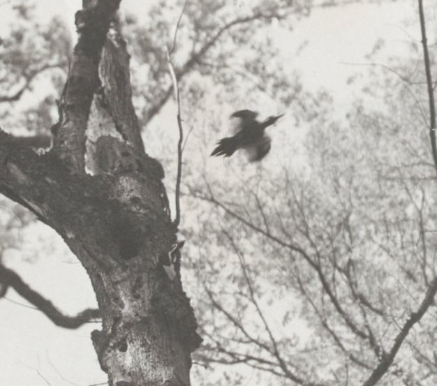 Short Flights between Limbs. According to an account by Tanner, the Ivory-billed Woodpecker usually flaps its wings during short flights between limbs. This would make sense for a woodpecker that has narrow wings and is one of the most massive in the world. The Pileated Woodpecker has a relatively low mass and broad wings, and it makes short flights nearly effortlessly. The large woodpecker in the 2006 video makes a deep and rapid flap during a flight of less than one meter. According to Zickefoose, this flight is “unlike anything I’ve seen a Pileated Woodpecker do.”