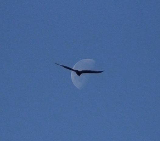 3-17-09. It was a green and gorgeous St. Patrick’s Day morning in the swamp. My heart skipped a few beats when a bird came flying up the bayou like the bird in the 2008 video, but it was a Wood Duck. While sitting at the stakeout, I looked up and saw a TV on the Moon.