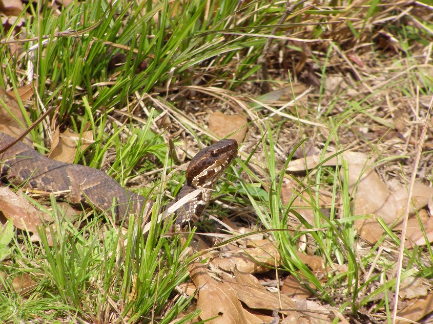 3-10-09. While sitting at the stakeout, I looked down and saw an alligator snapping turtle with its head poking out of the water about ten feet away. Some interesting critters have shown up at that spot this year, but the desired one has not yet made an appearance. On the way back, I saw a Bobcat and had another close encounter with a snake (this one harmless).