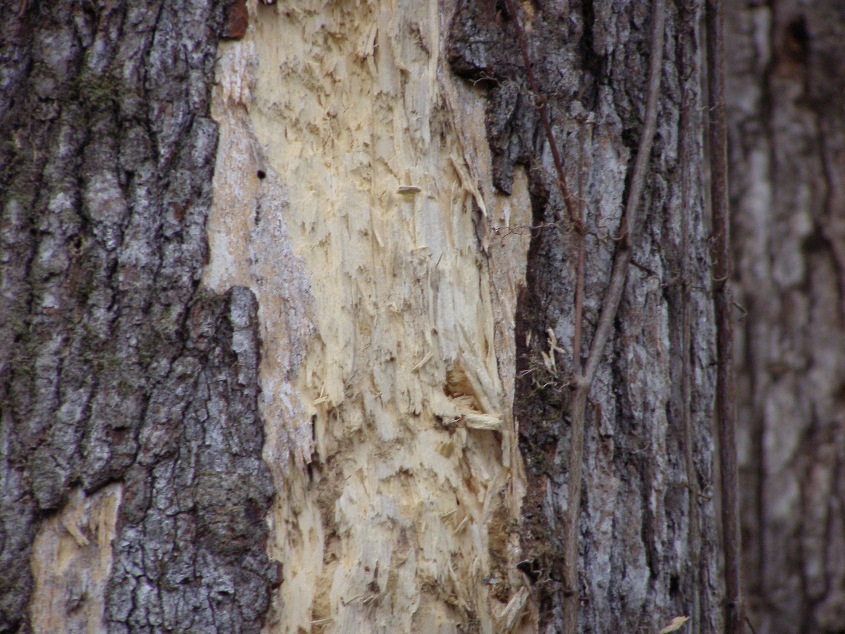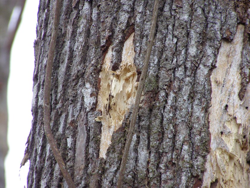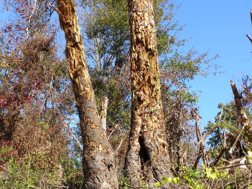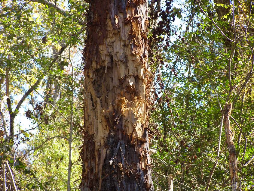 11-7-08. I began my search for ivorybills in the Pearl three years ago today. This morning, we found some interesting foraging sign that involved mostly stripping of the outer bark as in