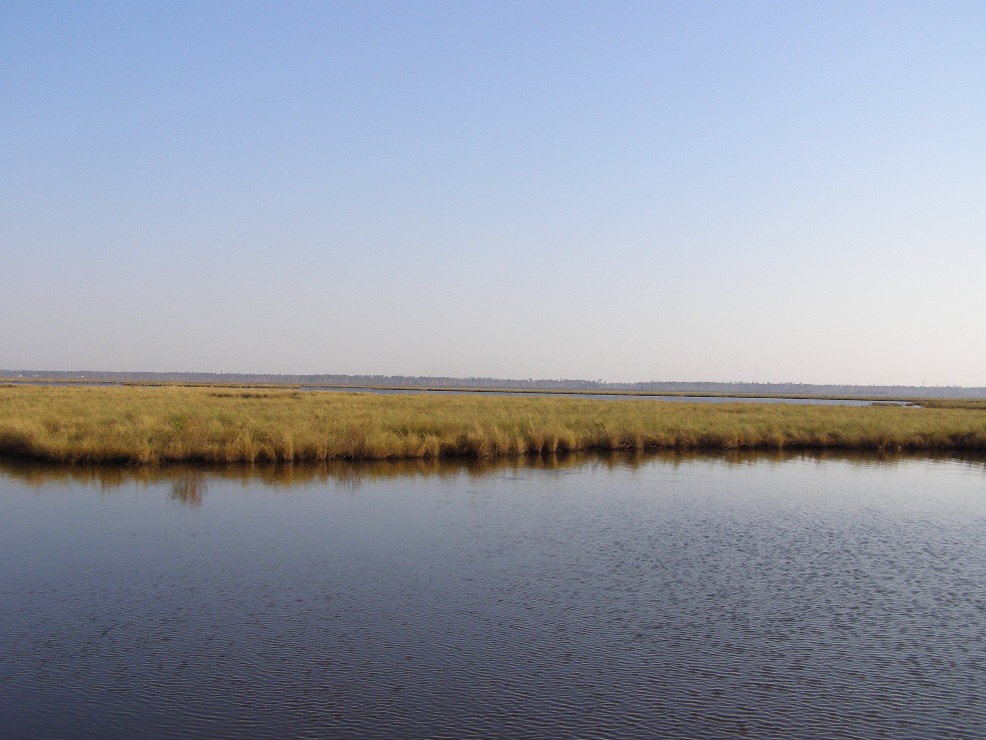 11-9-08. We did about 10 miles in the kayaks today, beginning with the area around Tree 6, which appears in the distance in this photo. In the vicinity of the bombing range, we observed machine gun damage to