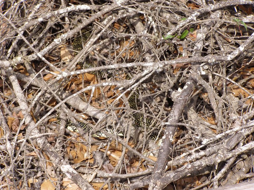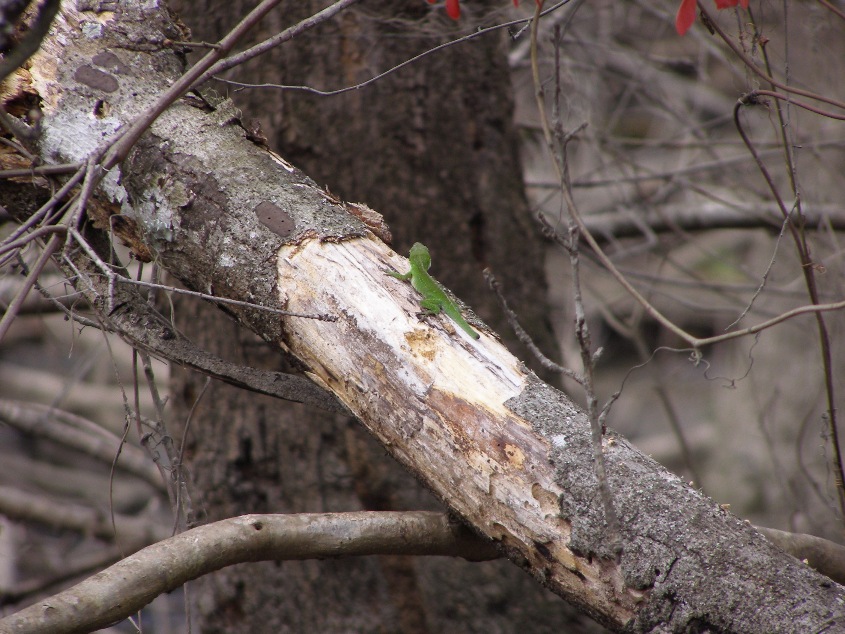 2-27-09. Another day, another stakeout. There are lots of signs of spring, including leaves coming out, warm weather, singing White-eyed Vireos, and a large black snake that stared me down before going straight down a hole in the ground. The Northern Parulas and Yellow-throated Warblers should arrive in another day or two, with the Swallow-tailed Kites not far behind.