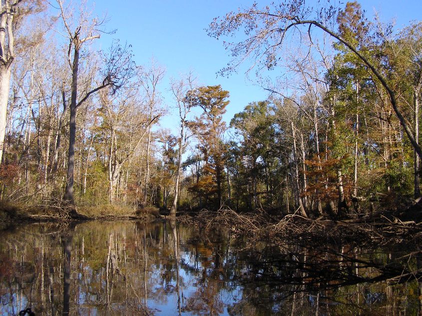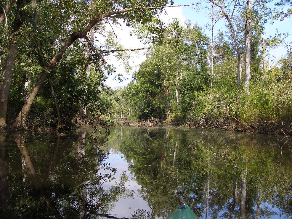 opposite direction is the infamous Bermuda Triangle, where I broke my arm, capsized the kayak in cold water, and had a gator tail-whip the kayak. To avoid stumbling, I kept my eyes on the ground and