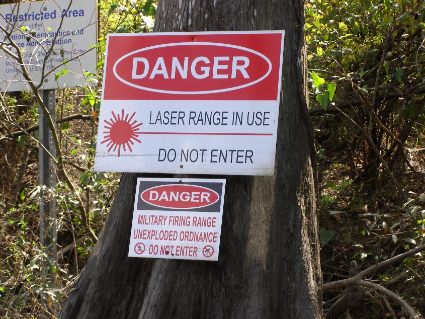 10-8-08. I saw two Striped Skunks at Stennis last night. I wanted to visit the swamp this morning, but the knee is still acting up. A few days ago, Charles from Louisiana and I went for a boat ride on Mike’s River and the East Pearl. There were signs like this along the entire route. Several miles into the trip, the size of the bombing range began to dawn on Charles, who made these remarks.