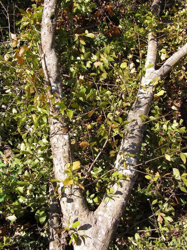 2-18-09. Gretchen and David joined me for some off-trail hiking, which I had been avoiding due to the knee injury. After visiting Tree 8, we bushwhacked our way to Tree 6 and did a stakeout. It’s gotten a bit warm and leaves are starting to come out on the lower vegetation.