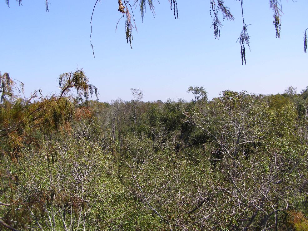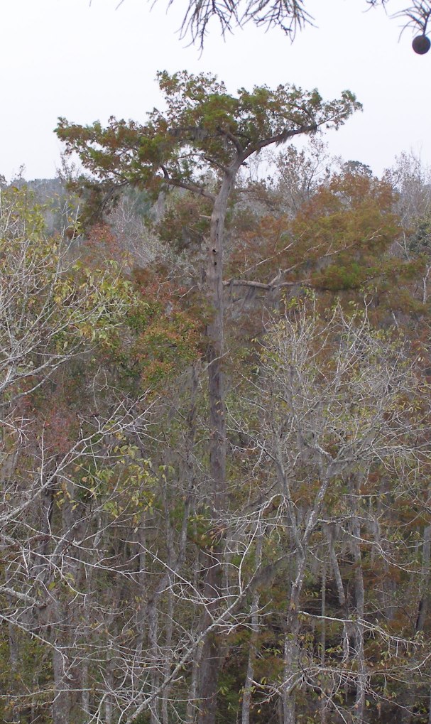 11-10-08. Bob hiked out to Tree 8 with me for a climb. It was a cool and windy morning, and I spent a few hours up there. Spending time in a tree that’s swaying in the wind is a lot like being on a ship. You can still feel the movement after coming down from the tree. A large parcel of land is for sale on the periphery of the Pearl. This land could be bought up and managed for ivorybills as well as Red-cockaded Woodpeckers and Bachman’s Sparrows.