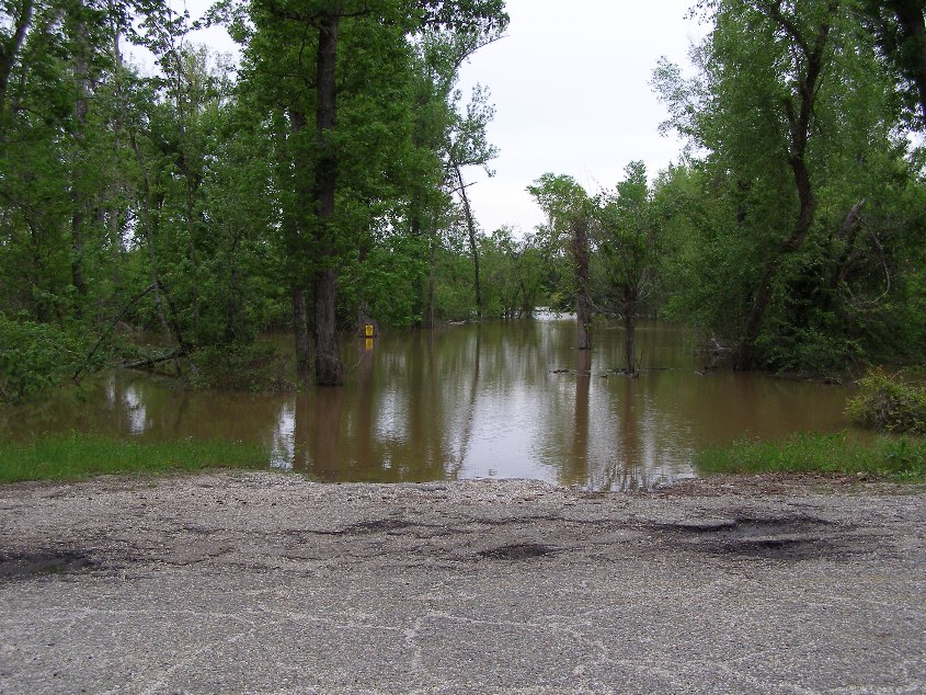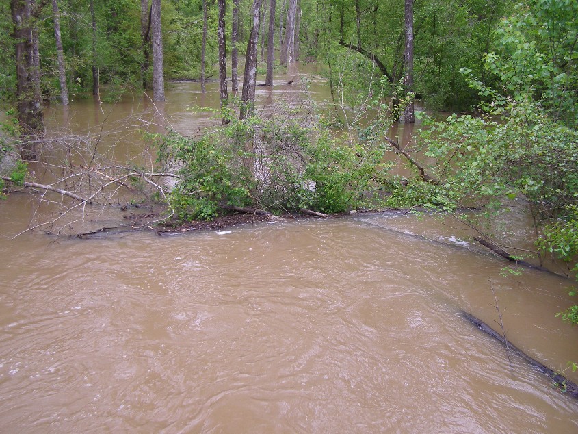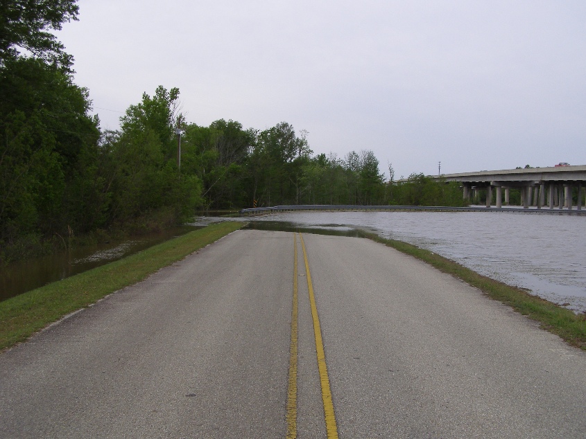 4-1-09. David Kulivan’s sighting of a pair of ivorybills in the Pearl was exactly ten years ago. The entrance to Old Hwy. 11 was closed to vehicles this morning due to the highest water levels that I have seen in the Pearl. It appears that the