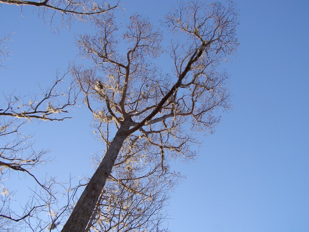2-5-09. The knee didn’t keep me awake last night, which makes me hopeful that it hasn’t regressed to the state it was in last fall. It was another gorgeous day in the swamp. I took a trail that approaches the East Pearl. Several trees in that area appear promising for midstory climbs. I’m going to get a backpack for carrying 100 feet of rope and give that approach a try in the next few days. I tried a few beanbag tosses this morning and found that the practice the other day has paid off.