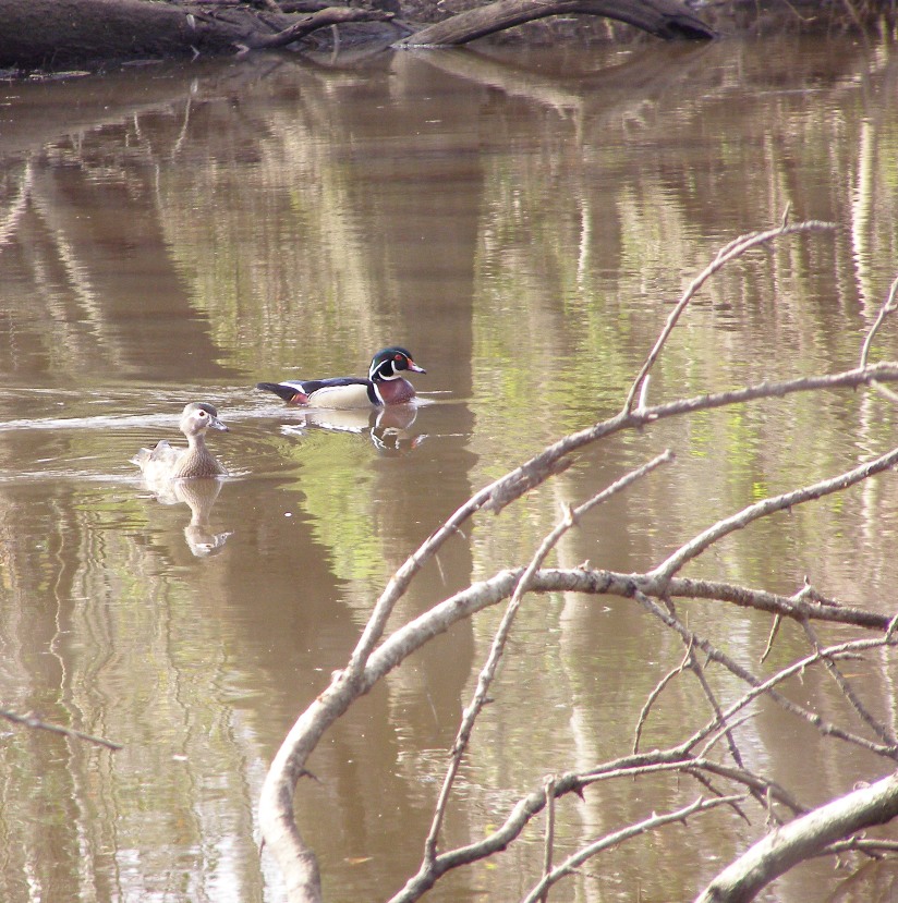 this pair as they landed on the water. Later on, the camera picked up a high-pitched sound when another Wood Duck veered sharply while flying past at high speed. I had the impression that the sound came from the wings but later determined that it was this call. Although the sonograms are similar, the call of the flying bird sounds unusual to my ears, but this is probably due to the circumstances. I was sitting right on the edge of a narrow bayou. The bird called just as it was passing at close range. So there would have been significant amplitude variation and Doppler effect. On the way back, Gretchen pointed out
