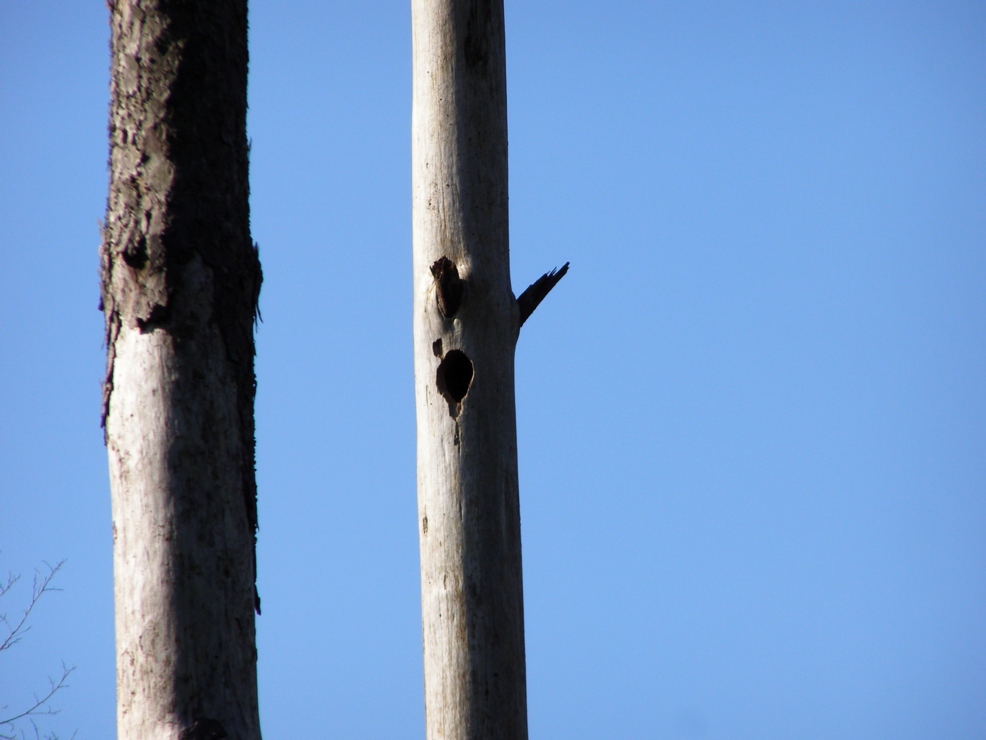 pines along the canal might be attractive to ivorybills at this time of year, especially since there’s a large swamp nearby. I found several large cavities clustered in a way that reminds me of the excavation work that appeared near Tree 6 around the time the 2008 video was obtained. Although it may have been enlarged by a mammal, the size and shape of