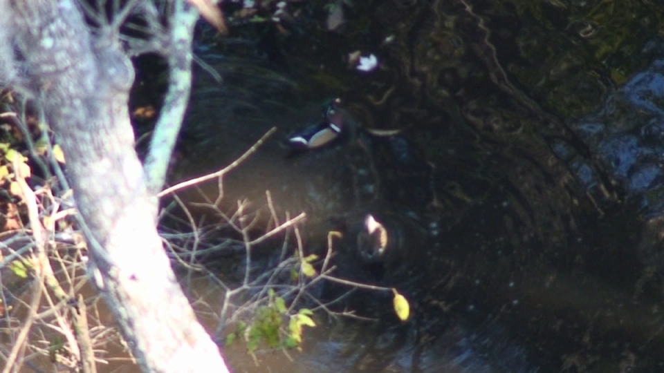 11-13-09. I made it to the top of Tree 8 just after sunrise and obtained video of a Red-headed Woodpecker in flight. Based on this footage and additional footage that was obtained by others, there now seems to be a consensus that the bird in the November 5 video is a red-headed. A pair of Wood Ducks landed on the water below without seeming to notice me.