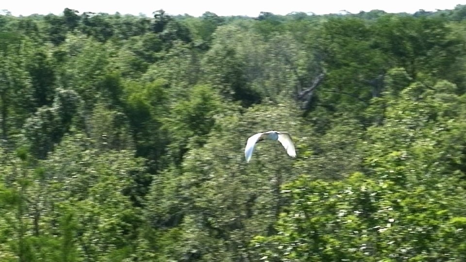 in the observation position. By comparison, the pulley in Tree 6 (which is above my head) is only 82 feet above the water. I got some footage of a pair of ibises that flew by in the fog (the movie plays at half speed). I’ve been working out in the gym and losing weight. It seems to be helping because I’m now able to climb Tree 8 in 15 minutes with a loaded backpack.