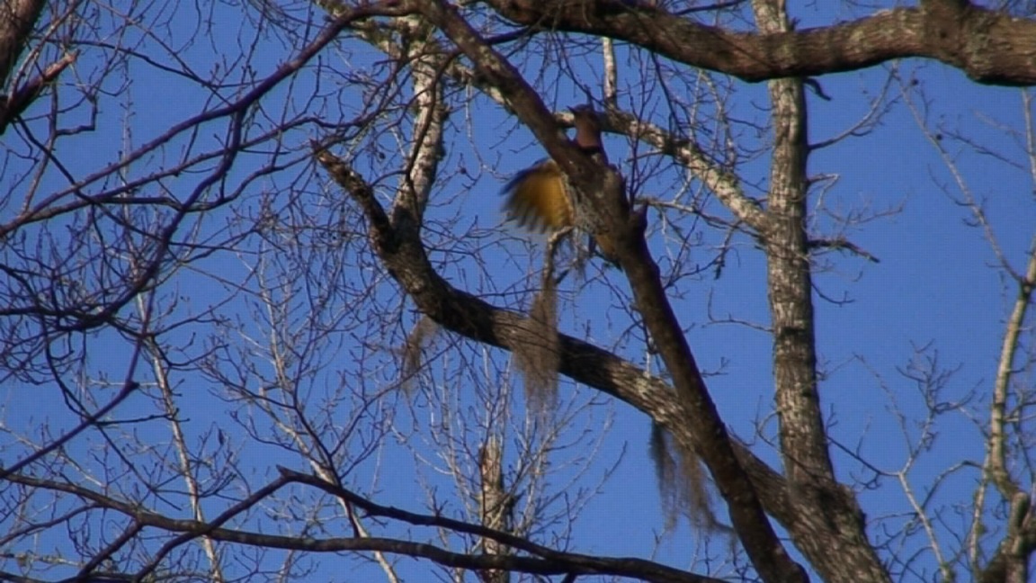 1-28-10. It was very birdy in the swamp this morning. I decided to wear boots rather than waders and wasn’t able to go as far as desired since the water has come back up. I have always wanted to get a nice photo of the undersides of the wings of a flicker. I had what seemed to be a good chance this morning, but I was only able to get part of it.