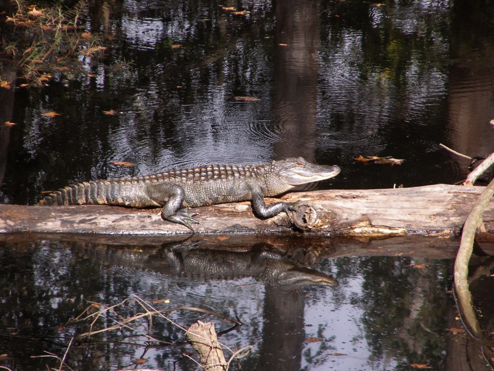 fairly large gator on the type of small bayou that I often wade across. On the way out, I saw a