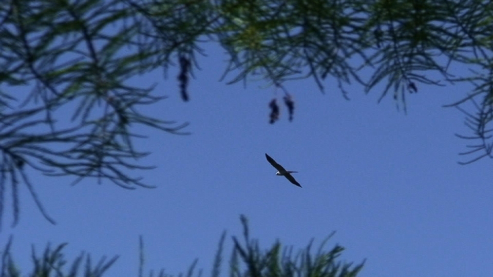 4-30-10. I burned about an hour of high-def video from Tree 9 to DVD. It was relaxing to sit back last night and watch it on a big-screen TV and listen to the birds singing and other sounds. I also extracted several images from the video. A crow tried to harass a Swallow-tailed Kite but was no match for it