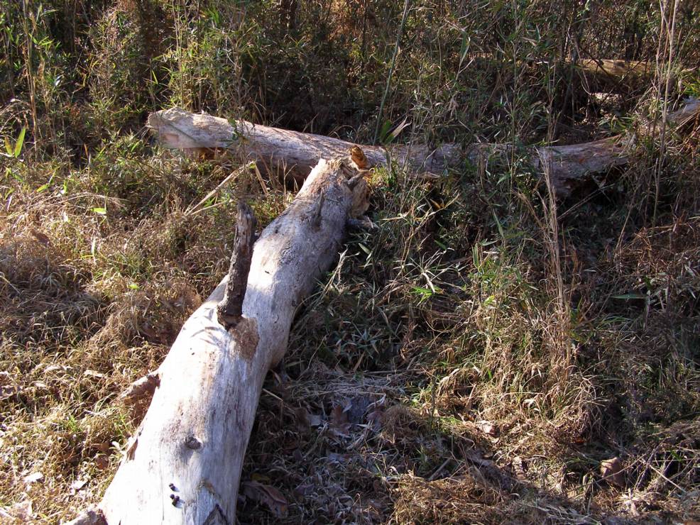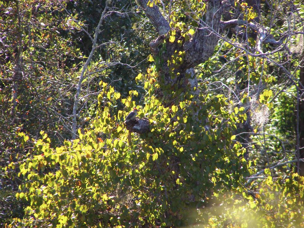8-13-09. I visited Tree 8 this morning. I’m looking forward to spending some time up there but will probably wait for the weather to cool off before doing any climbing. Another tree came down nearby with an explosive crack when it broke and a resounding thud when it hit the ground. I came across a group of about six turkeys. The number of cuckoos in the Pearl seems to be higher than in previous years.