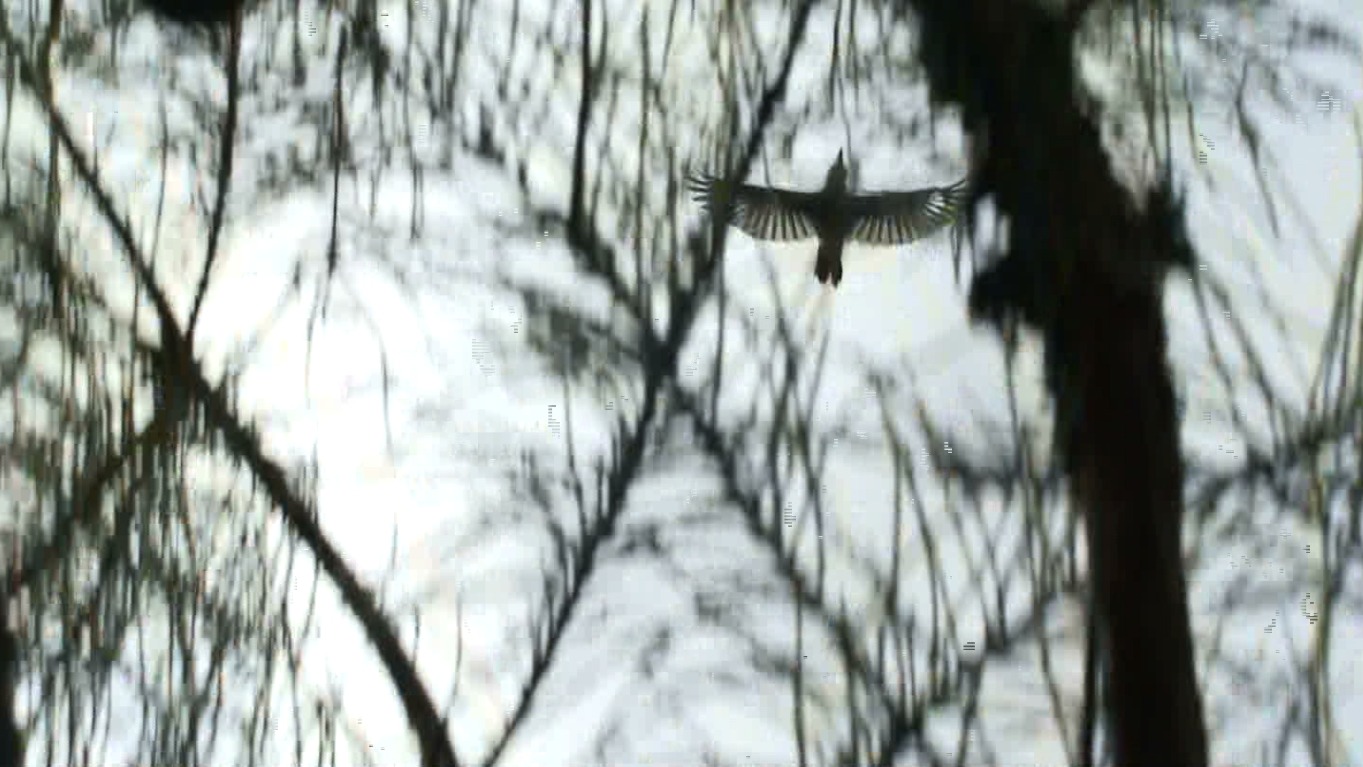 11-3-09. I heard two possible double raps and obtained two interesting video clips from Tree 8 this morning. The bird that flies toward the camera in