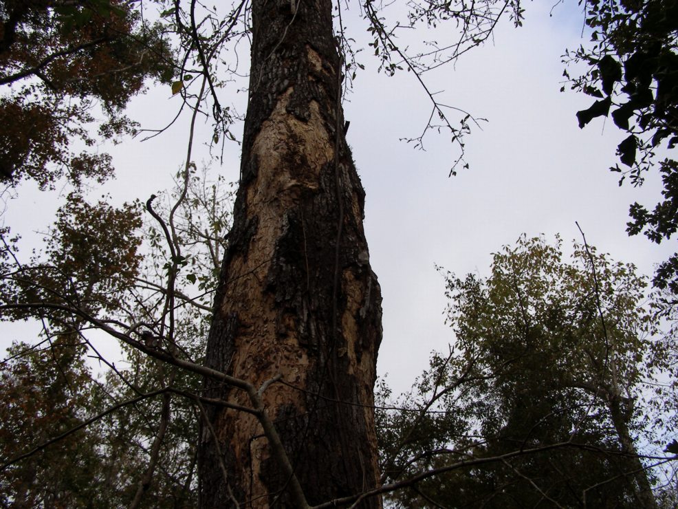 8-21-09. This morning, I visited Texas Flat Rd., which runs through the Stennis buffer zone to the east of the Pearl. In recent years, there have been several late summer reports from that area, which is mainly pine forest but also contains swamps and hardwoods. The timing of these reports is consistent with the account of Herbert L. Stoddard in “Memoirs of a Naturalist.” Stoddard mentioned that ivorybills could often be found feeding on beetle larva in pines in the late summer and fall. My friend Gretchen is a wildlife rehabber and is currently caring for