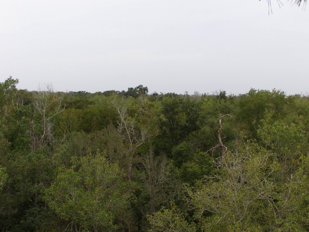 misty up there at first. Once again, there was a great deal of woodpecker activity. For the third climb in a row, a Red-headed Woodpecker flew by at close range. It was exciting to watch a pair of pileateds in a long flight over the treetops. I hope to see an ivorybill in that kind of flight. I saw a coyote on the way in. The mosquitoes were bad, but fortunately they didn’t follow me up the tree.