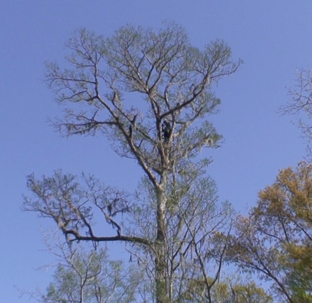 While sitting in the kayak near Tree 6, I took this photo of Tree 10 poking up in the background. The bird in the 2008 video flew by the tupelo that juts out into the water on the right. During my first three years in the Pearl, I had more sightings of Ivory-billed Woodpeckers than Red-headed Woodpeckers, but I’ll never be able to say that again. I must have seen a hundred Red-headed Woodpeckers this morning. I came across numerous groups of them, and it was the most common woodpecker species this morning by more than an order of magnitude. The only comparable experience I have had with high woodpecker numbers was at Cape May on a good day for flickers.