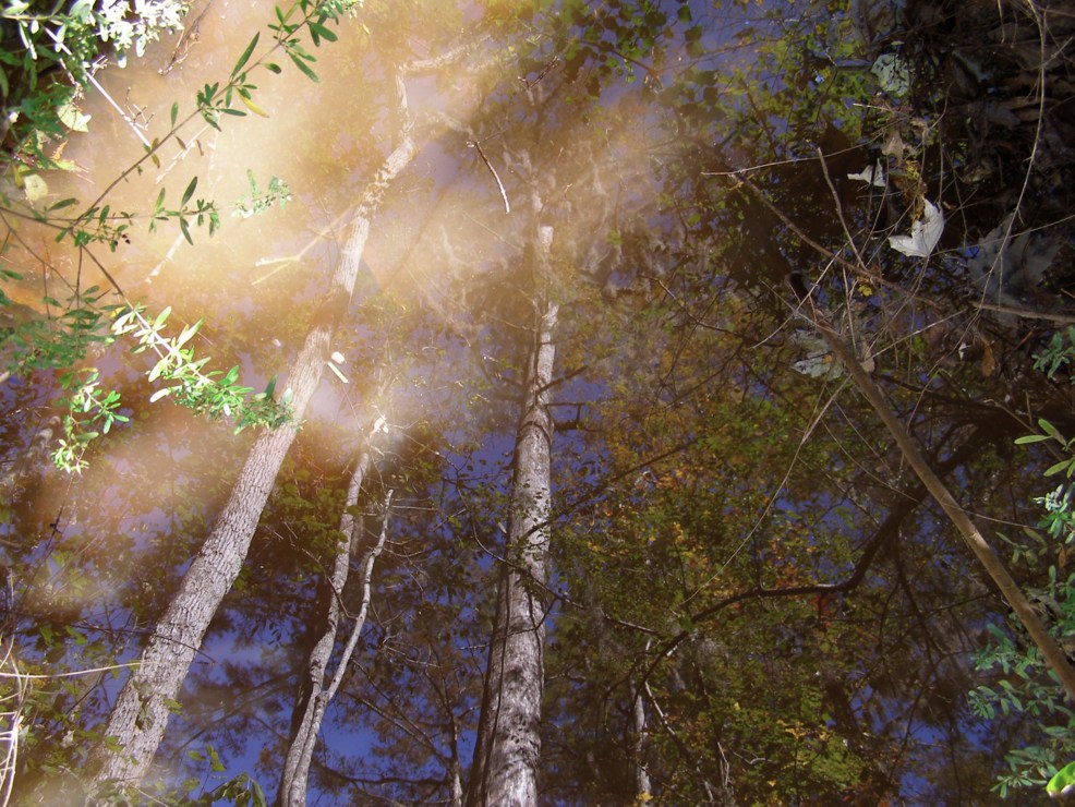 this bayou, which is now only a little over waist deep. The water is still a few feet higher than normal, and I took this photo of the reflection of Tree 8 off the water at its base. Nice weather is predicted this week, and I will try to spend some time in Tree 8.