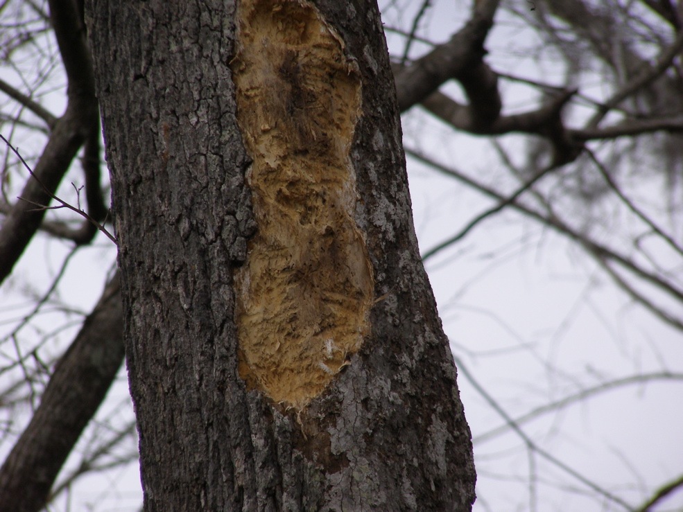 interesting foraging. It appears similar to foraging that I found shortly before having sightings in 2008. The bark appears to be tight, and it appears that much of the foraging was done all at once (there’s a large pile of chips below).
