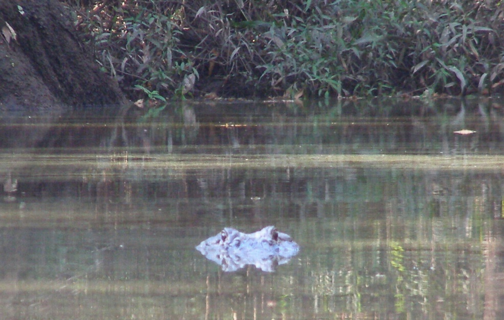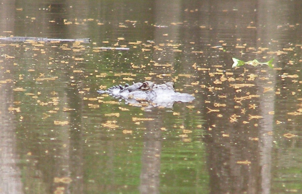 10-11-12. I went for a walk along the Pearl on the Mississippi side and detected two of the dangers of the Pearl, one large and one small. The large danger was one of the largest gators I have seen in the Pearl. It was basking in the sun on the opposite bank. Then it slithered into the water, came over toward me, and spent several minutes watching me from the middle of the river. The behavior suggests that someone has been feeding it. Not a good thing, especially for such a large gator near where I launch the kayak. I have seen two other large gators this year, near areas where I had run-ins with gators in the kayak in previous years. The small (but unpleasant) danger is the chiggers that I picked up on my legs. The purpose of the walk was to look for an outstanding tree on the bank opposite Stennis that might be good for keeping watch just to the east of where the videos were obtained.