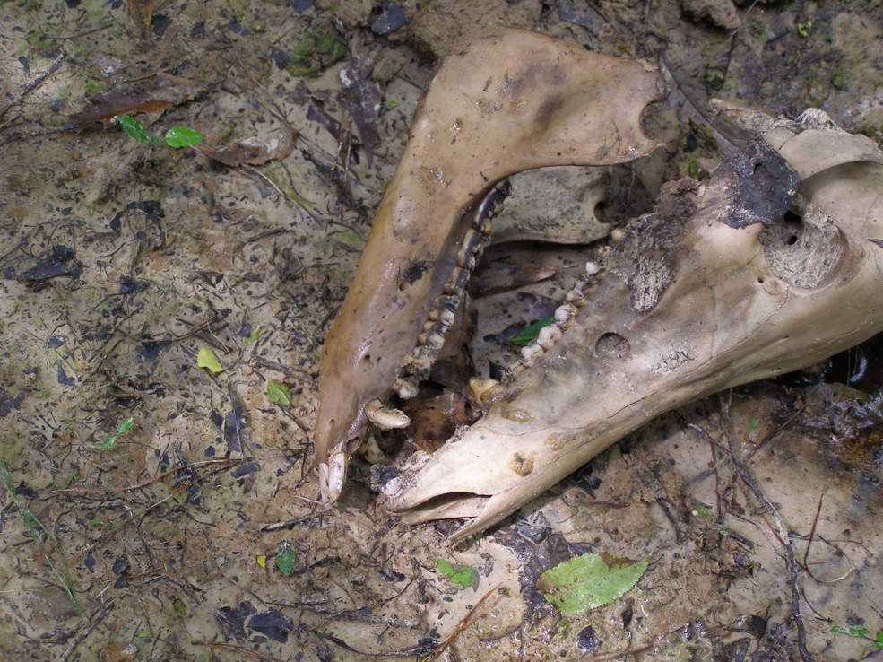 a fallen tree. We didn’t have time to reroute the trail. We found the jaws of a wild hog.