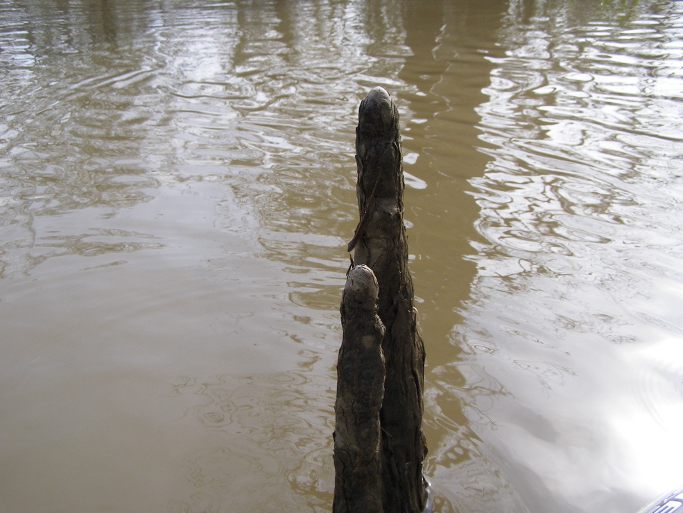 the area where the 2006 video was obtained. I had the strangest feeling that someone was watching me. I looked for a leaky old kayak that I had stashed not far from Tree 6. Either someone found it, or it was washed away during the flood a few months ago. It was in bad shape, but I hated to lose my first kayak.
