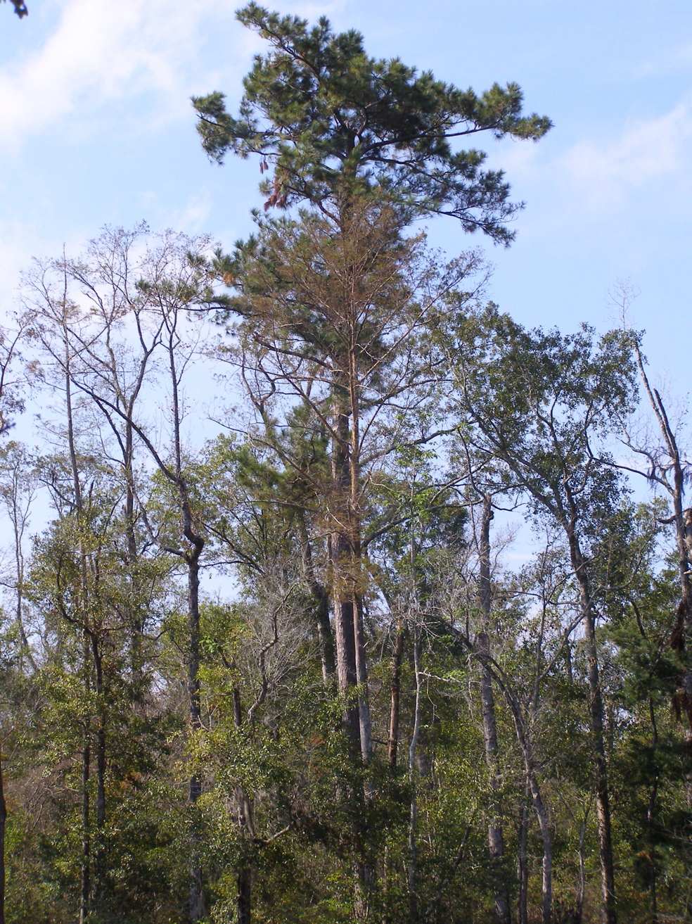 10-13-12. This morning, I found this tree just across the Pearl from Stennis. It appears that it will provide an excellent view far out over the treetops. The new tree is much easier to reach than any of the others, and it provides hope for a sighting in Mississippi. Pines aren’t the most trustworthy trees, but this one appears to be healthy and sturdy.