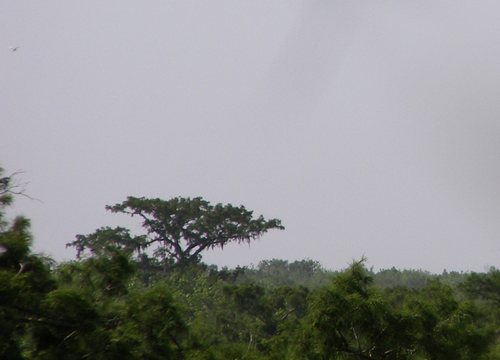 6-14-13. This afternoon, I rigged the tree that was recently discovered. Tree 11 provides a nice view over good habitat to the west, which is ideal for mornings. There are some big trees nearby that might provide an even better view. The were lots of birds in the area, including this heron. Being located near the state border, this tree has the potential to lead to a sighting in Mississippi. This panorama gives an idea what it’s like to observe from Tree 11. This movie shows some of the many birds that were flying above the treetops. These images were extracted from video footage.