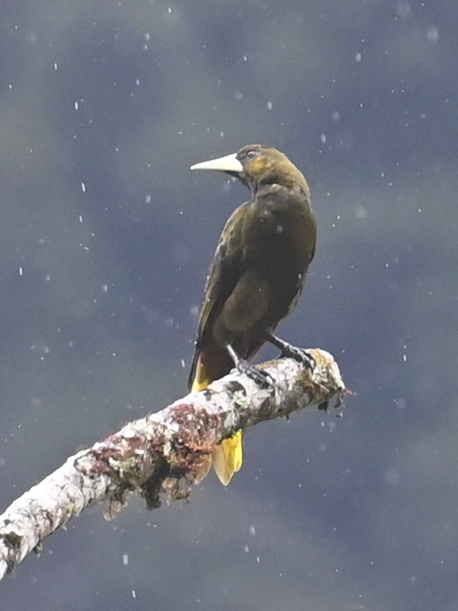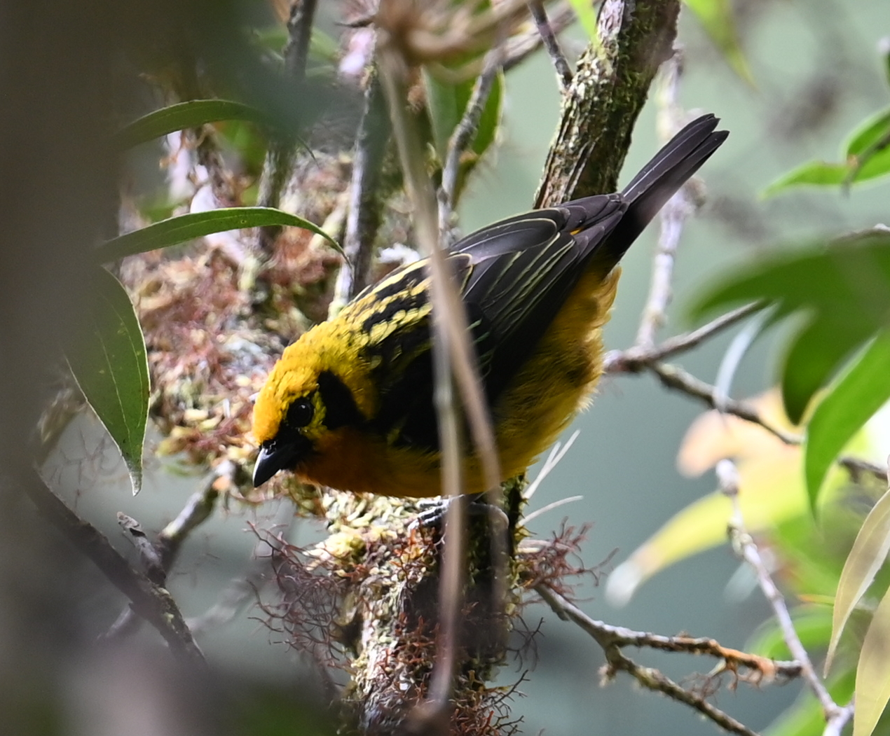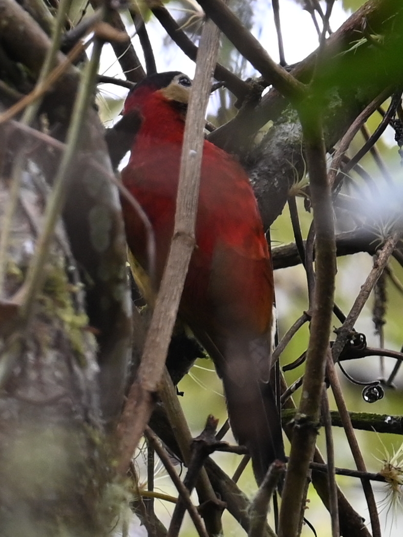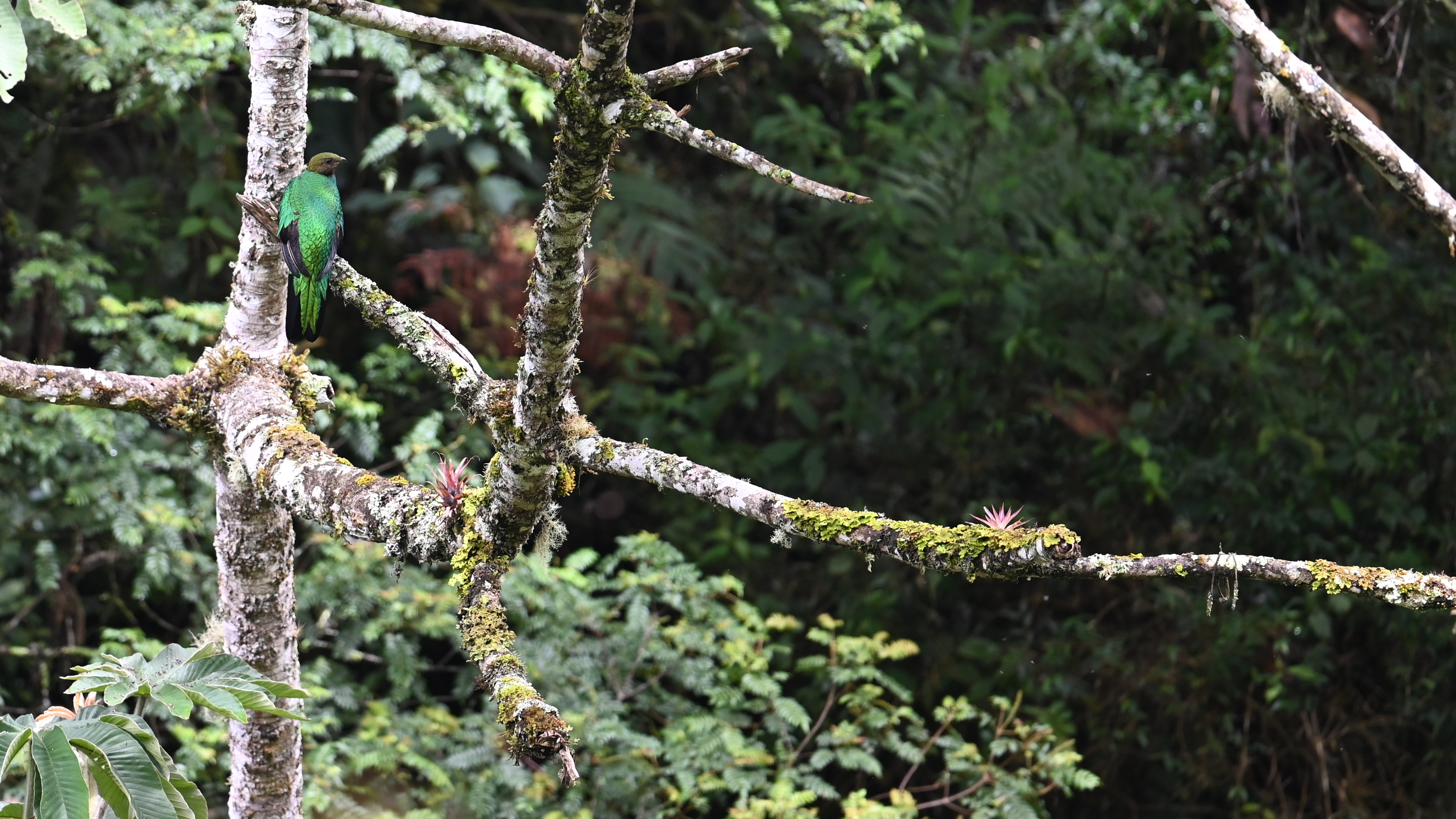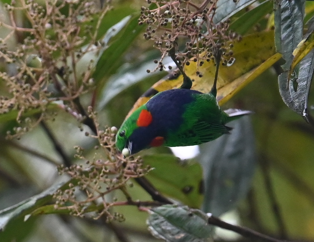 Cloud Forest. One of my goals in the cloud forest was to obtain nice photos of the Golden-headed Quetzal. I had an ideal photo opportunity with that species during my first visit to Manu in 2003. I came upon a spectacular male perched at close range in good light, but I didn’t have a good camera. On this trip, I took several long walks up and down Manu Road through the cloud forest. With time running out on my last day, I saw a flash of red through the trees on the opposite side of a narrow ravine. Then I saw a patch of bright green. I looked through my binoculars, and it was a quetzal! Two more of them appeared, and there were some fairly good photo opportunities. One of the photos appears in the above image (here is a higher-quality copy). I saw and heard many other species in the cloud forest, including Andean Guan, Ashy-throated Chlorospingus, Blue-banded Toucanet, Bronze-green Euphonia, Cinnamon Flycatcher, Dusky-green Oropendola, Golden-collard Tanager, Golden-crowned Flycatcher, Hooded Mountain Tanager, Olive-backed Woodcreeper, Purple Honeycreeper (female), Scarlet-bellied Mountain Tanager, Slate-throated Redstart, Spotted Tanager, Streak-necked Flycatcher, Three-banded Warbler, Versicolored Barbet, White-collared Jay, Andean Cock of the Rock, Green Jay, Masked Tanager male and female, Paradise Tanager, Solitary Eagle, Citrine Warbler, Masked Tanager, Saffron-crowned Tanager, Golden-collared Honeycreeper, Golden Tanager, Black-faced Brushfinch, Band-tailed Pigeon, Crimson-mantled Woodpecker, Crested Oropendola, Spectacled Redstart, Blue-capped Tanager, Amethyst-throated Sunangel, Slaty-backed Chat-Tyrant, Sunbittern, Glossy-black Thrush, Strong-billed Woodcreeper, Smoke-colored Pewee, Deep-blue Flowerpiercer, Marble-faced Bristle-Tyrant, Plumbeous Pigeon, Speckled Chachalaca and Amazonian Motmot. I obtained this footage of a calling Solitary Eagle. I used the drone to get this photo of the cloud forest.