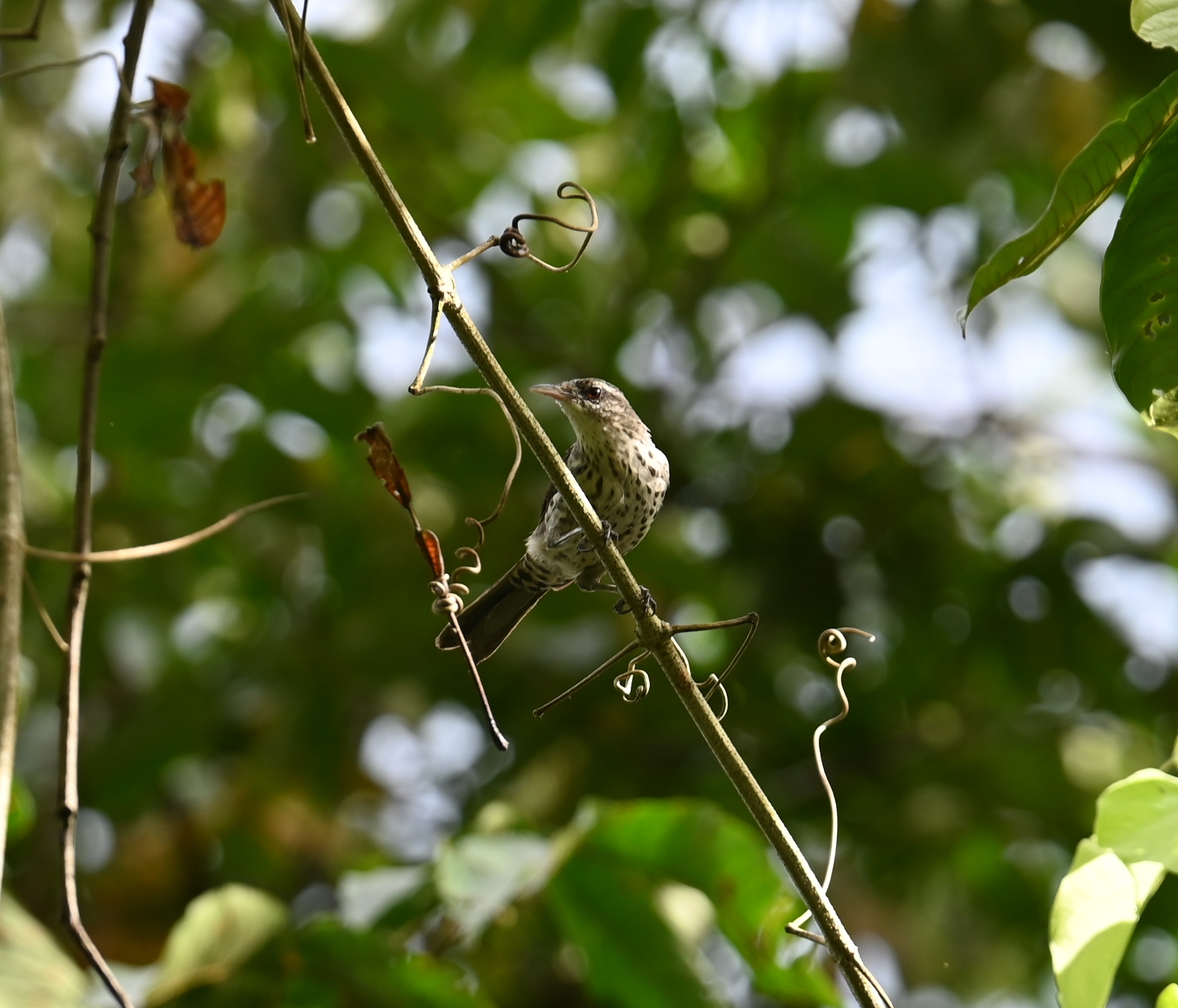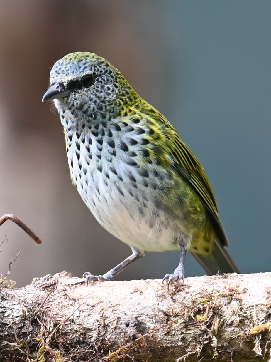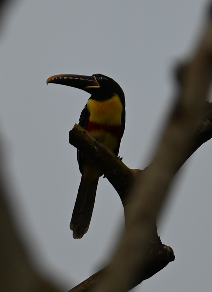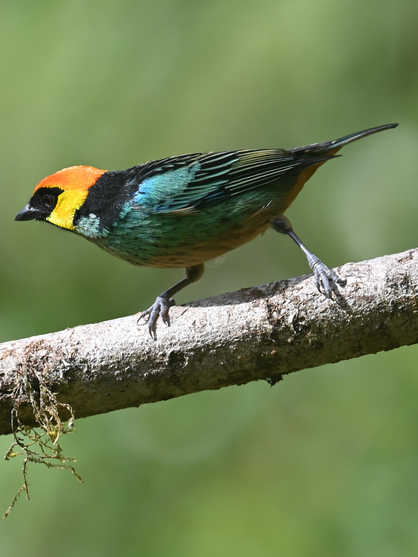 Cloud Forest. One of my goals in the cloud forest was to obtain nice photos of the Golden-headed Quetzal. I had an ideal photo opportunity with that species during my first visit to Manu in 2003. I came upon a spectacular male perched at close range in good light, but I didn’t have a good camera. On this trip, I took several long walks up and down Manu Road through the cloud forest. With time running out on my last day, I saw a flash of red through the trees on the opposite side of a narrow ravine. Then I saw a patch of bright green. I looked through my binoculars, and it was a quetzal! Two more of them appeared, and there were some fairly good photo opportunities. One of the photos appears in the above image (here is a higher-quality copy). I saw and heard many other species in the cloud forest, including Andean Guan, Ashy-throated Chlorospingus, Blue-banded Toucanet, Bronze-green Euphonia, Cinnamon Flycatcher, Dusky-green Oropendola, Golden-collard Tanager, Golden-crowned Flycatcher, Hooded Mountain Tanager, Olive-backed Woodcreeper, Purple Honeycreeper (female), Scarlet-bellied Mountain Tanager, Slate-throated Redstart, Spotted Tanager, Streak-necked Flycatcher, Three-banded Warbler, Versicolored Barbet, White-collared Jay, Andean Cock of the Rock, Green Jay, Masked Tanager male and female, Paradise Tanager, Solitary Eagle, Citrine Warbler, Masked Tanager, Saffron-crowned Tanager, Golden-collared Honeycreeper, Golden Tanager, Black-faced Brushfinch, Band-tailed Pigeon, Crimson-mantled Woodpecker, Crested Oropendola, Spectacled Redstart, Blue-capped Tanager, Amethyst-throated Sunangel, Slaty-backed Chat-Tyrant, Sunbittern, Glossy-black Thrush, Strong-billed Woodcreeper, Smoke-colored Pewee, Deep-blue Flowerpiercer, Marble-faced Bristle-Tyrant, Plumbeous Pigeon, Speckled Chachalaca and Amazonian Motmot. I obtained this footage of a calling Solitary Eagle. I used the drone to get this photo of the cloud forest.