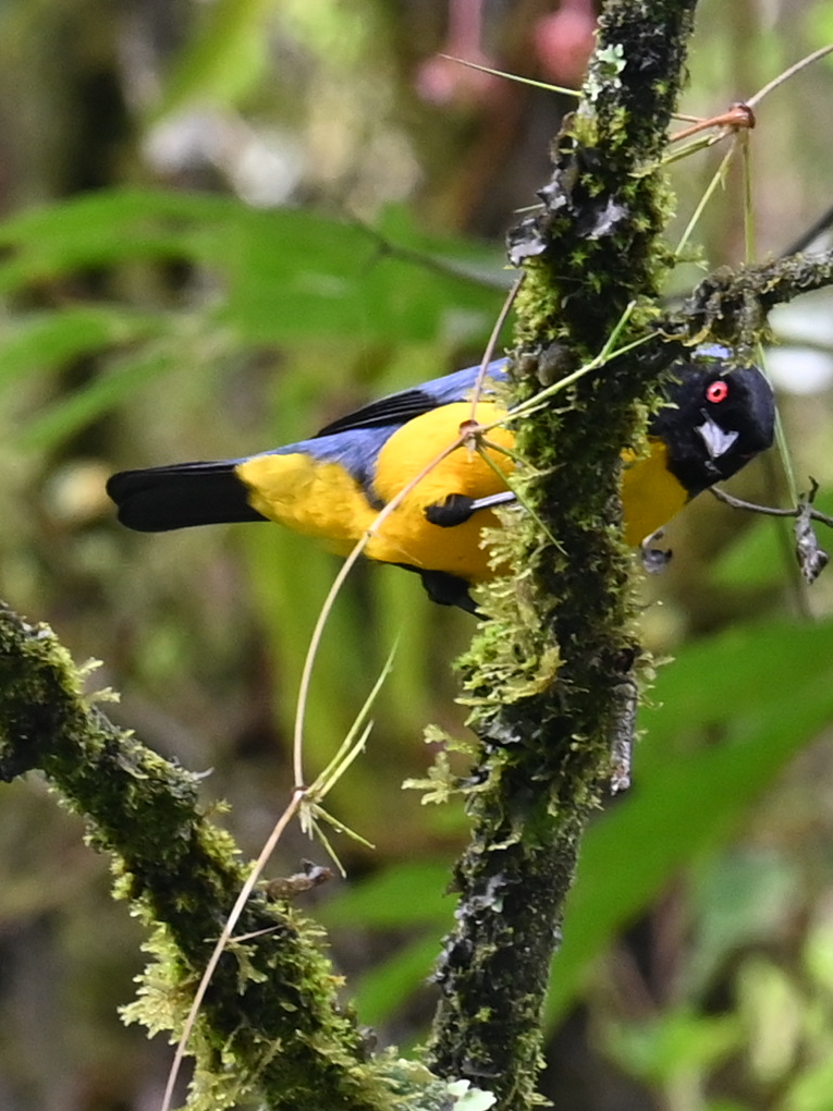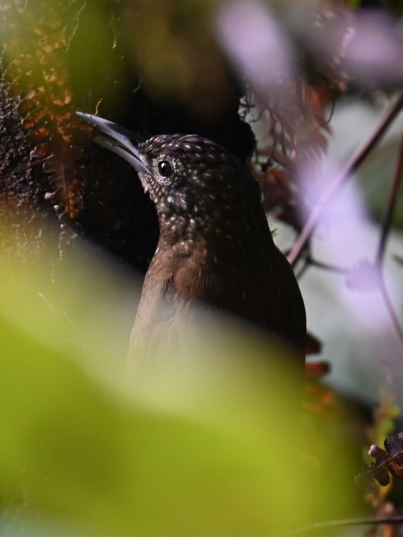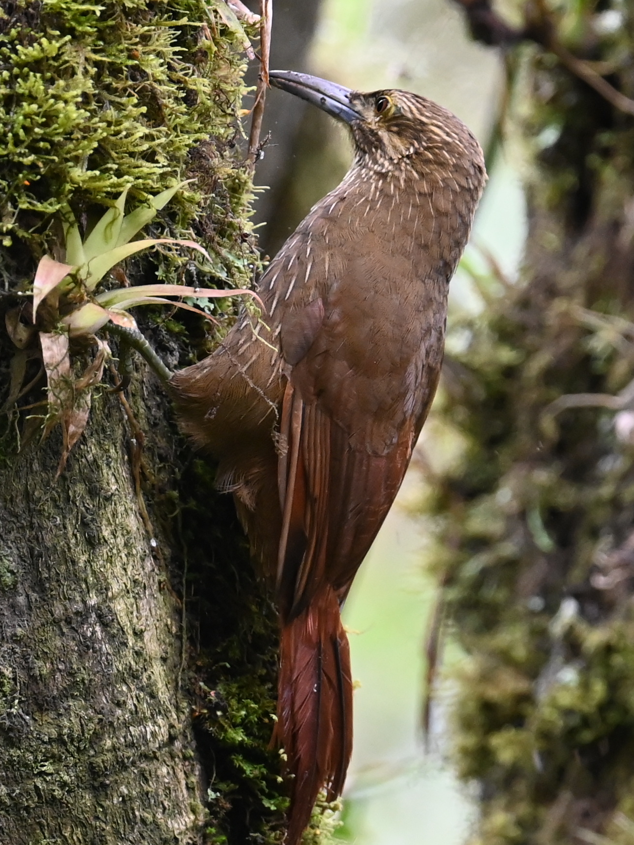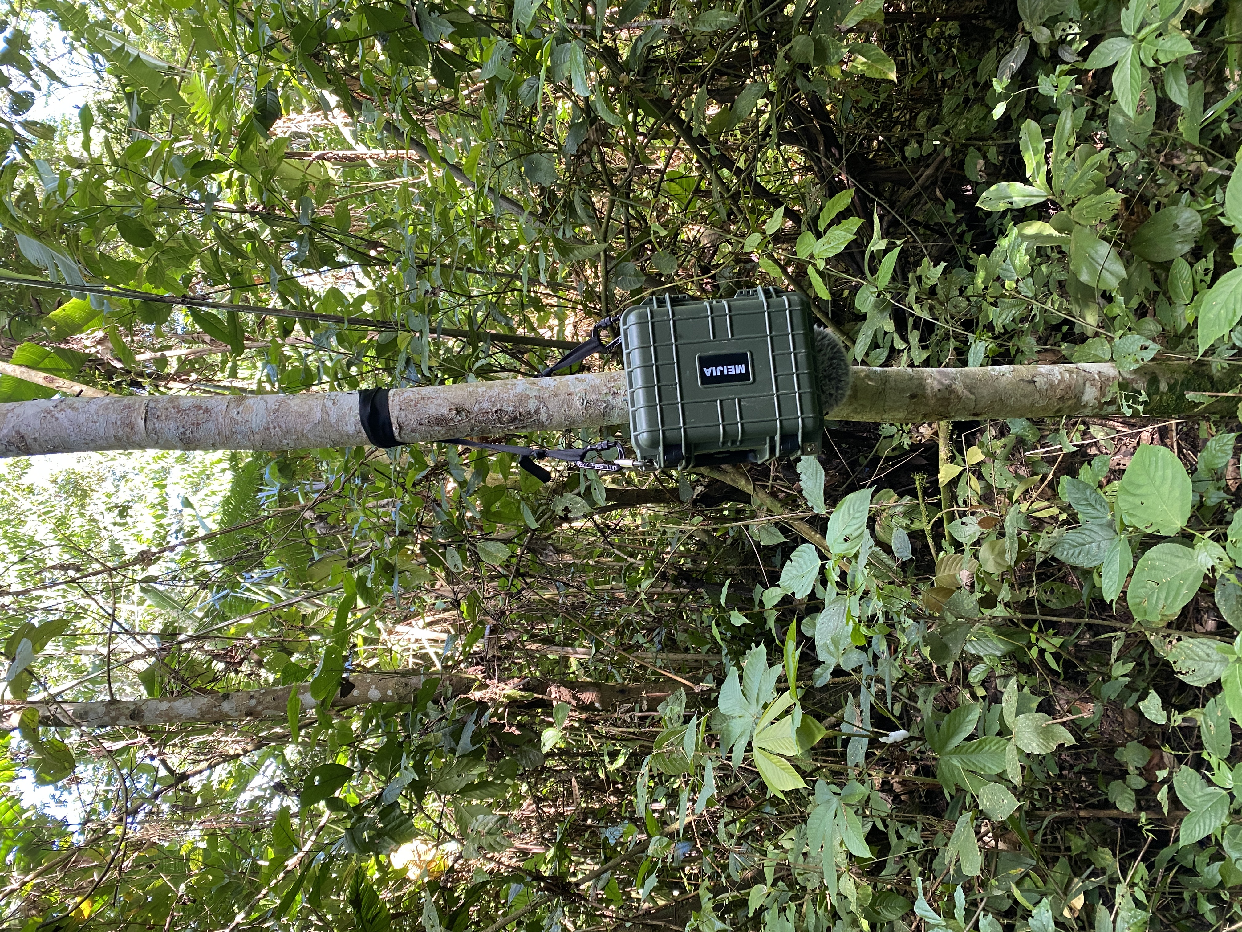 Wide Range of Elevations and Habitats. I visited Manu National Park in Peru in April 2026. The valley appearing in the above image (click here for a high-resolution version) is located in the cloud forest, where I spent four nights at Cock of the Rock Lodge. In the distance is the lowland forest along Rio Madre de Dios, where I spent five nights at Amazonia Lodge. This photo shows the view from a higher elevation on Manu Road, with the lowland forest far in the distance. The objective of the trip was to obtain photographs and audio recordings of birds and drone footage of pristine habitats. I used a Nikon Z6ii camera with a NIKKOR 400 mm lens, three Sony PCM-D100 audio recorders, and a DJI Mavic 3 Classic drone. Two of the audio recorders were deployed in weather-proof containers.