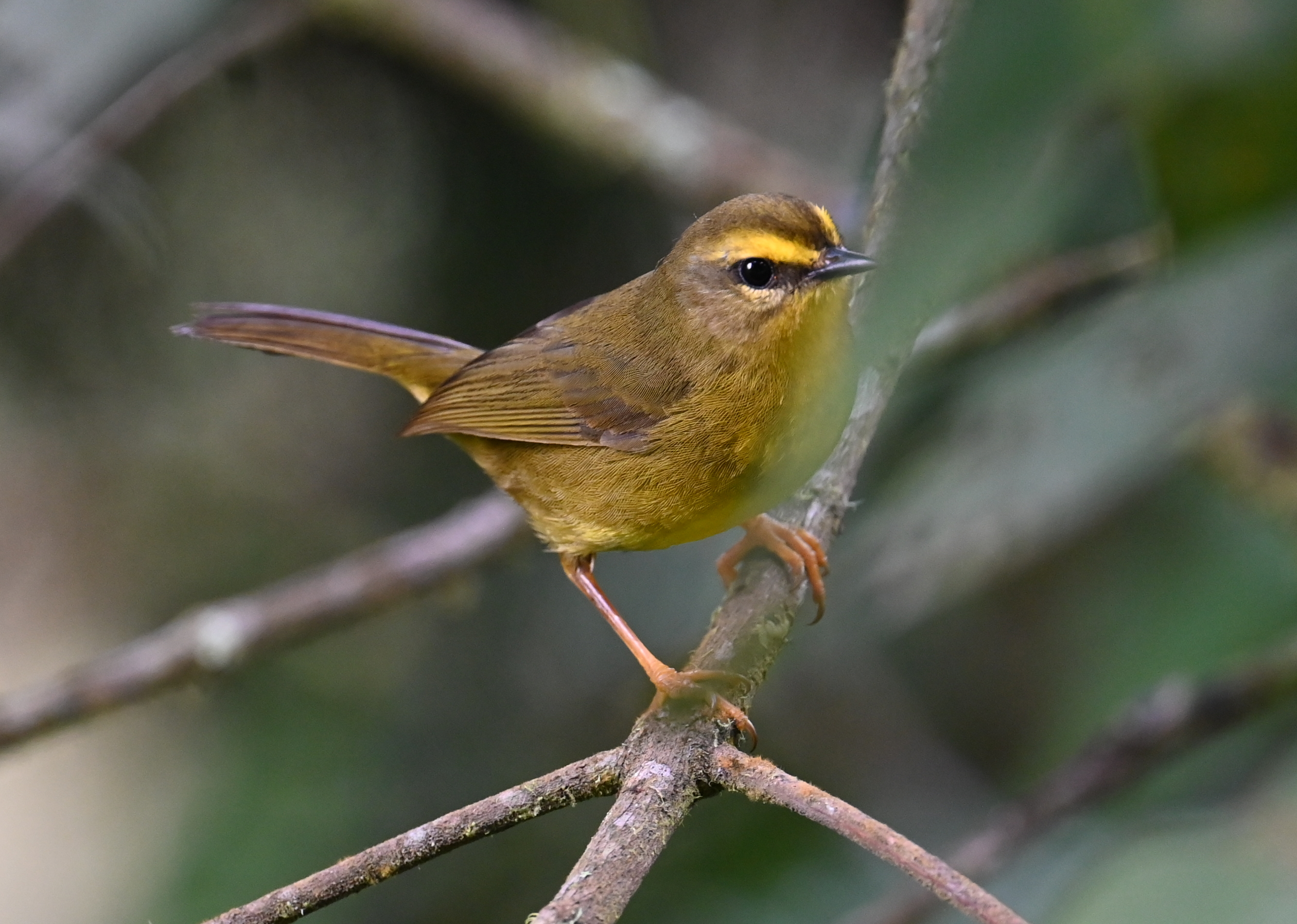 Wakefield Park in northern Virginia had lots of good habitat for migrating Connecticut and Mourning Warblers in the late 1990s. During that period, I searched that park for those species each morning during migration. I saw each of them ten times in 1998. I saw both species on the same day a few times. I saw three Connecticut Warblers one morning in 1999. A Mourning Warbler set up an out-of-range territory there in 2004. I searched for those elusive birds by relentlessly covering as much area as possible each day. Several years later, I used the same strategy to search for Ivory-billed Woodpeckers. In 1997, I visited southeastern Manitoba to observe Connecticut and Mourning Warblers on their breeding grounds. As June approached every subsequent year, I longed to return to the boreal forests of that region. I finally made it back up there in 2023. On a 4,000 mile road trip, I drove up the northwestern coast of the lower peninsula of Michigan, over the Mackinac Bridge, to the north of Lake Superior, and across Ontario through Thunder Bay and Kenora. I found dozens of Mourning Warblers but only one Connecticut Warbler, which was singing deep in a spruce bog to the west of Kenora. I initially decided not to venture out into the bog to see that bird. I was anticipating easier opportunities further to the west in Manitoba, but it turned out that an area where these birds nested in 1997 had been logged. Running short on time, I decided to backtrack to the site near Kenora, where the Connecticut Warbler was still singing! Having suffered a broken arm during a fall in 2007, I cautiously made my way out over the unstable ground in the bog. I obtained more than ten minutes of video with a handheld 4K camera. It was hard to hold the camera steady while standing on unstable ground and with the lens on full zoom, but DaVinci Resolve did a nice job of removing the effects of camera motion. I also got some footage of a Spruce Grouse. Over and over, I aimed the video camera in the direction of a singing Mourning Warbler that seemed to be invisible. This photo gives an indication of how well these birds can blend into the vegetation. The camera picked up that bird, but my eyes missed it.