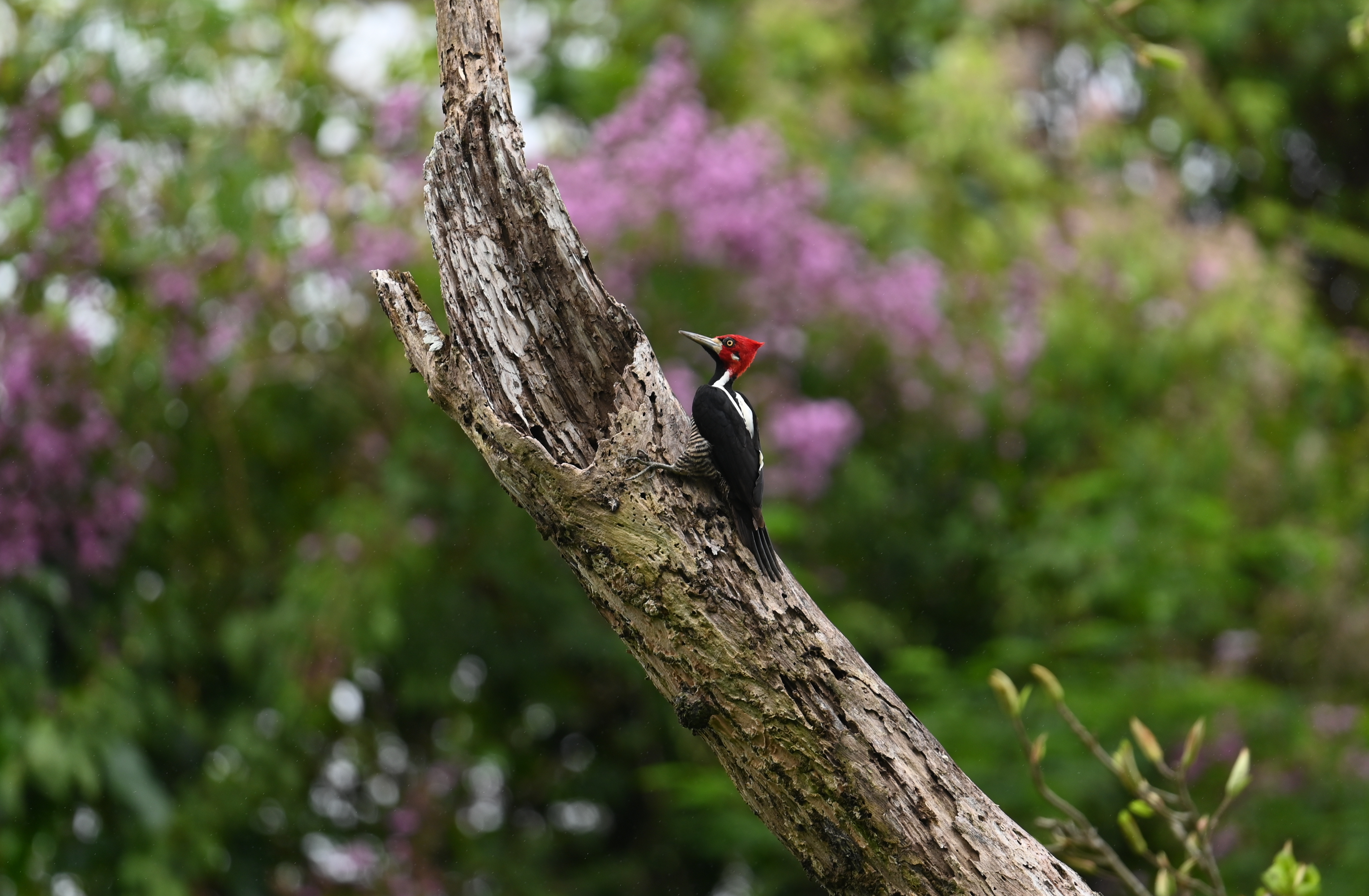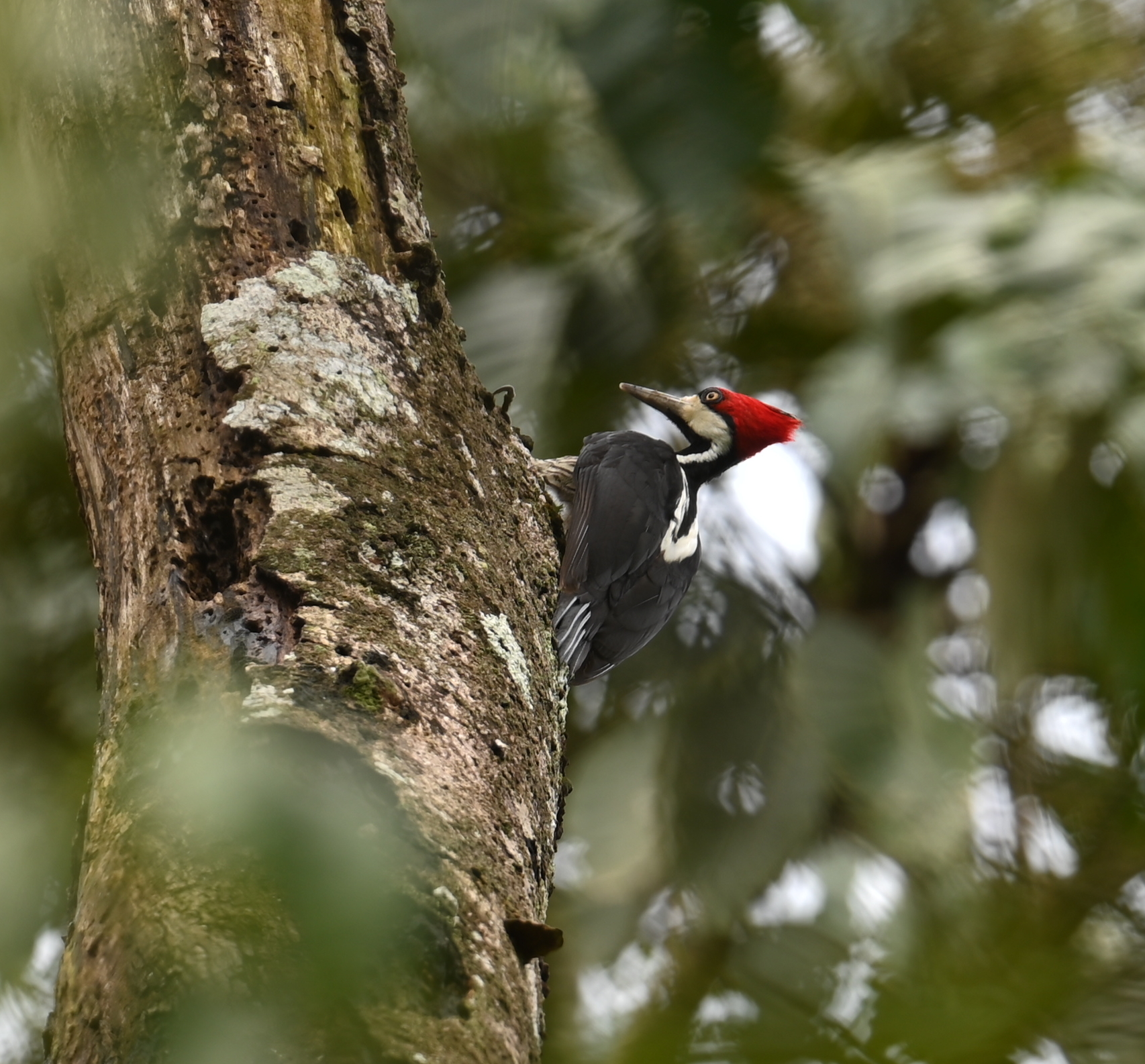 Magellanic Woodpecker. In 2018, I was considering a trip to Patagonia after coming across evidence that Magellanic Woodpeckers might have flights similar to the Ivory-billed Woodpecker. I set aside those plans after being diagnosed with prostate cancer. After retiring in 2025, I got in touch with Valeria Ojeda, who offered to take me to active nests in old-growth lenga forests, where she has been studying Magellanic Woodpeckers for more than twenty years. Just before the trip, my left foot and ankle swelled up. I knew this probably meant there was a blood clot in my leg (it was later diagnosed as an occlusive clot behind the knee), but I wasn’t going to let anything get in the way of this opportunity. A female Magellanic Woodpecker appears in the above photo. A male appears in this photo. During an encounter with a pair of Ivory-billed Woodpeckers in Florida in 2007, I obtained video footage of upward swooping landings with long vertical ascents. During two of those flights, the bird rotated about its axis and landed on a surface that doesn’t face the direction of approach as in this illustration. At one of the nests in Patagonia, I obtained this footage (cropped from a 4K video) of a landing that is identical to the landing in the illustration. Just after the landing, there is still some upward momentum, and the bird takes a few small steps upward. This is similar to a man stepping off a moving streetcar and taking a few quick steps before stopping. Note that the bird flies in to the left of the tree (rather than directly toward it), which sets up the landing on that side of the trunk. During the approach on this type of flight path, tree branches that could be dangerous obstacles along the ascent path would be relatively easy to see (sticking out to the side). In this uncropped image from the video, the tree on which the bird landed (to the right of the nest tree, which is in the center of the image) is the most suitable tree in the scene for a long vertical ascent along the trunk of a tree. The full 4K video may be downloaded here (Movie S12) along with other interesting flights by Magellanic Woodpeckers (Movies S13 through S16). From directly below a nest, I obtained a photo (click here for high-resolution version) that shows that the Magellanic Woodpecker has wing-tail-body proportions similar to those of the Ivory-billed Woodpecker: (1) the distance the tail projects behind the trailing edge of the wings is about the same as (or slightly greater than) the width of the wings (distance between the leading and trailing edges of the wings) and (2) the width of the body is more than half the width of the wings. In this comparison, note the similarities in the feet and crests (Tanner took the photo of the nestling Ivory-billed Woodpecker, which was later determined to be a male). From one of the nest sites, I had a nice view of Mt. Tronador. During my visit to Bariloche, Facundo Vital took me to a massive rock face that is pockmarked with caves where Andean Condors roost.